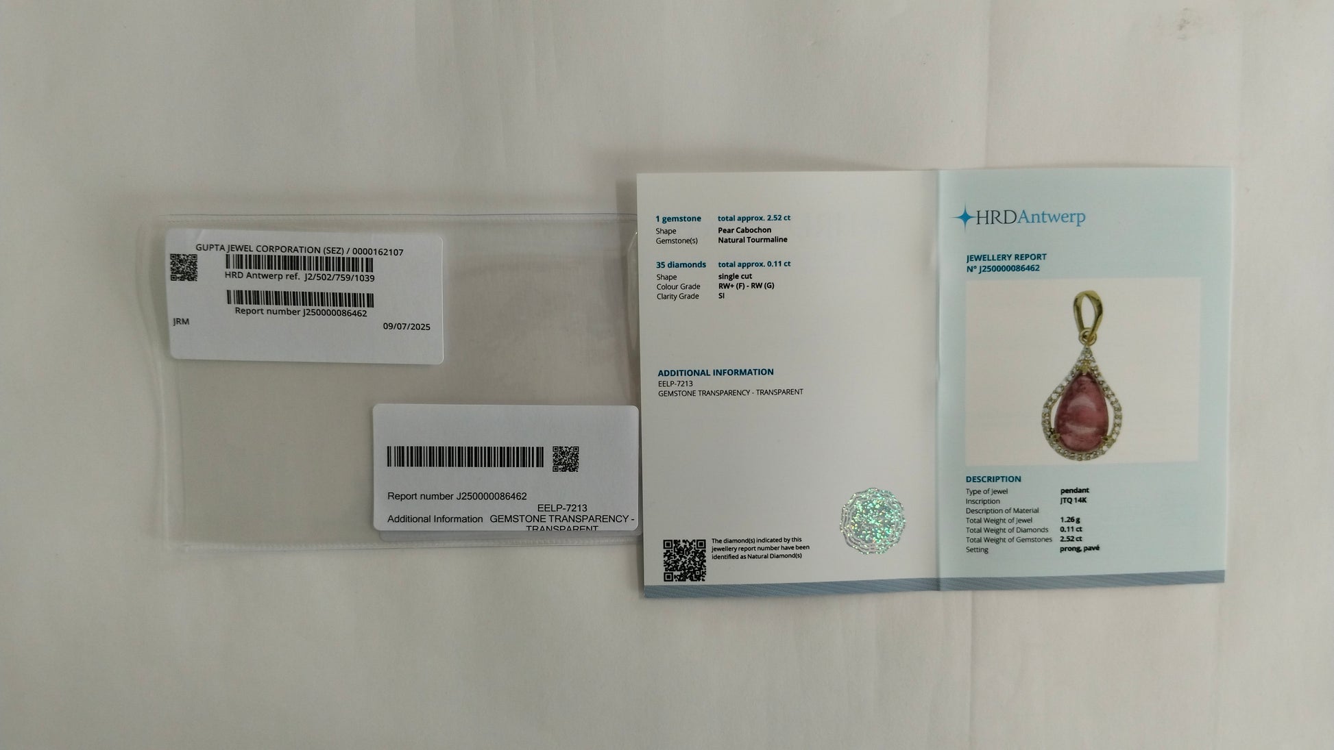 2.63 Total Carat Natural Tourmaline 14K Gold Pendant