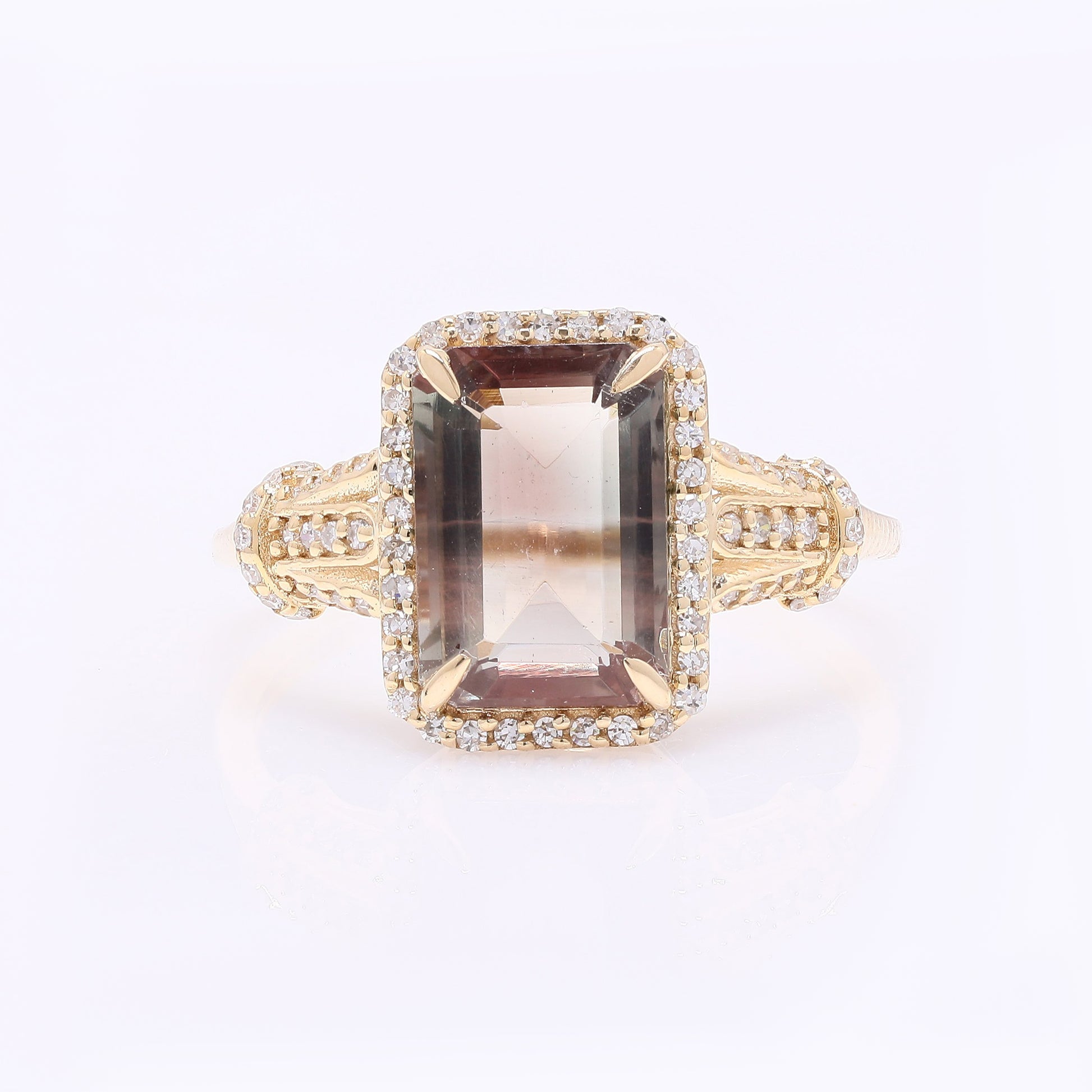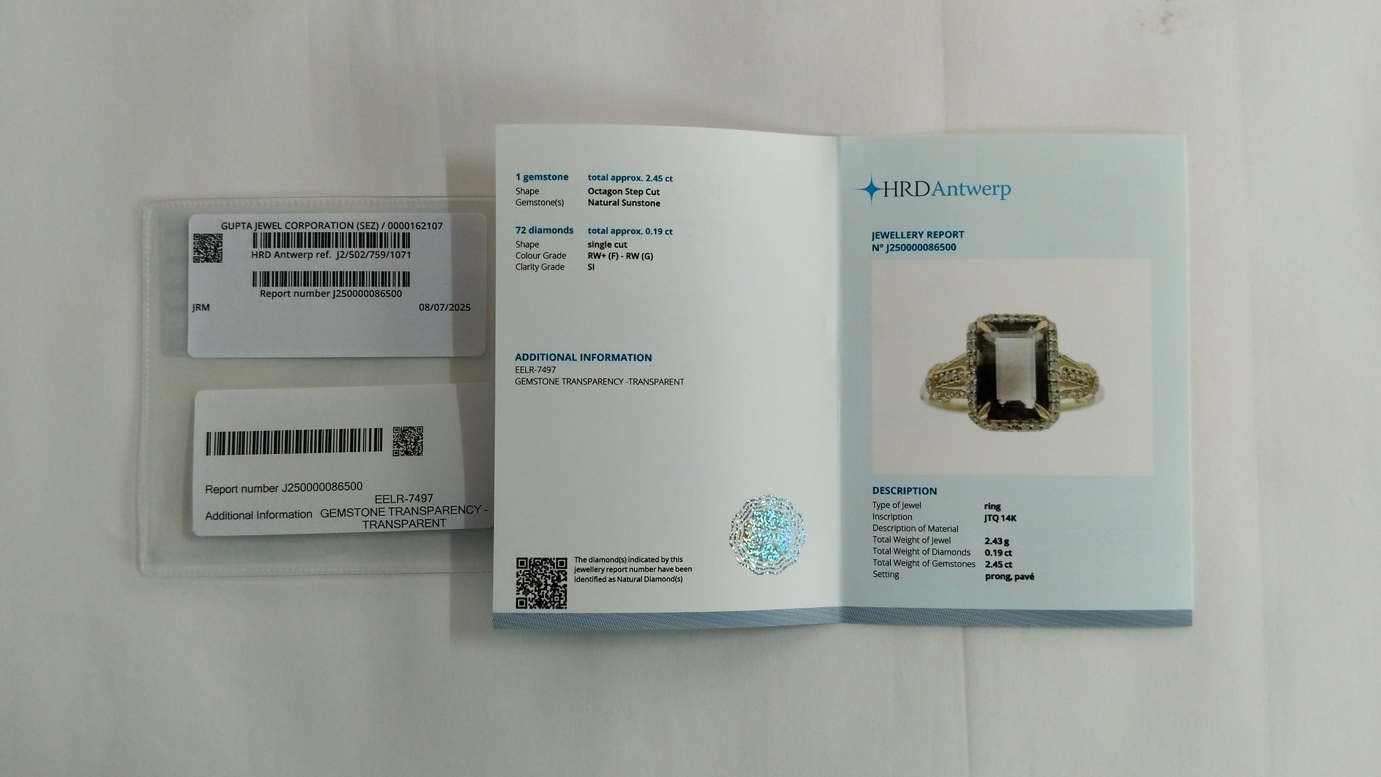 2.64 Ct Octagon Step Cut Natural Sunstone 14K Gold Ring