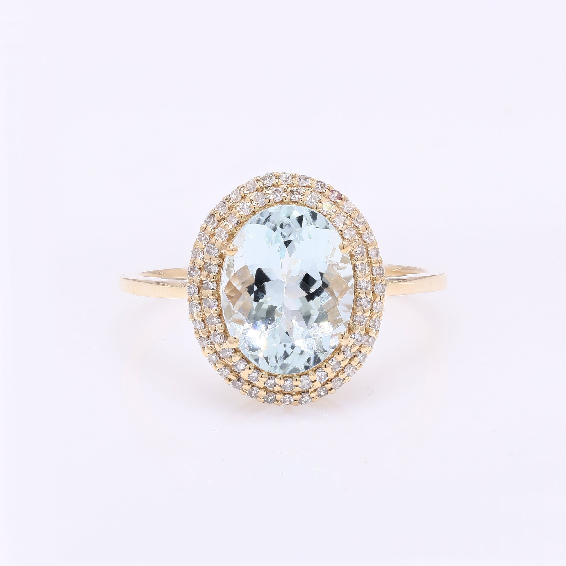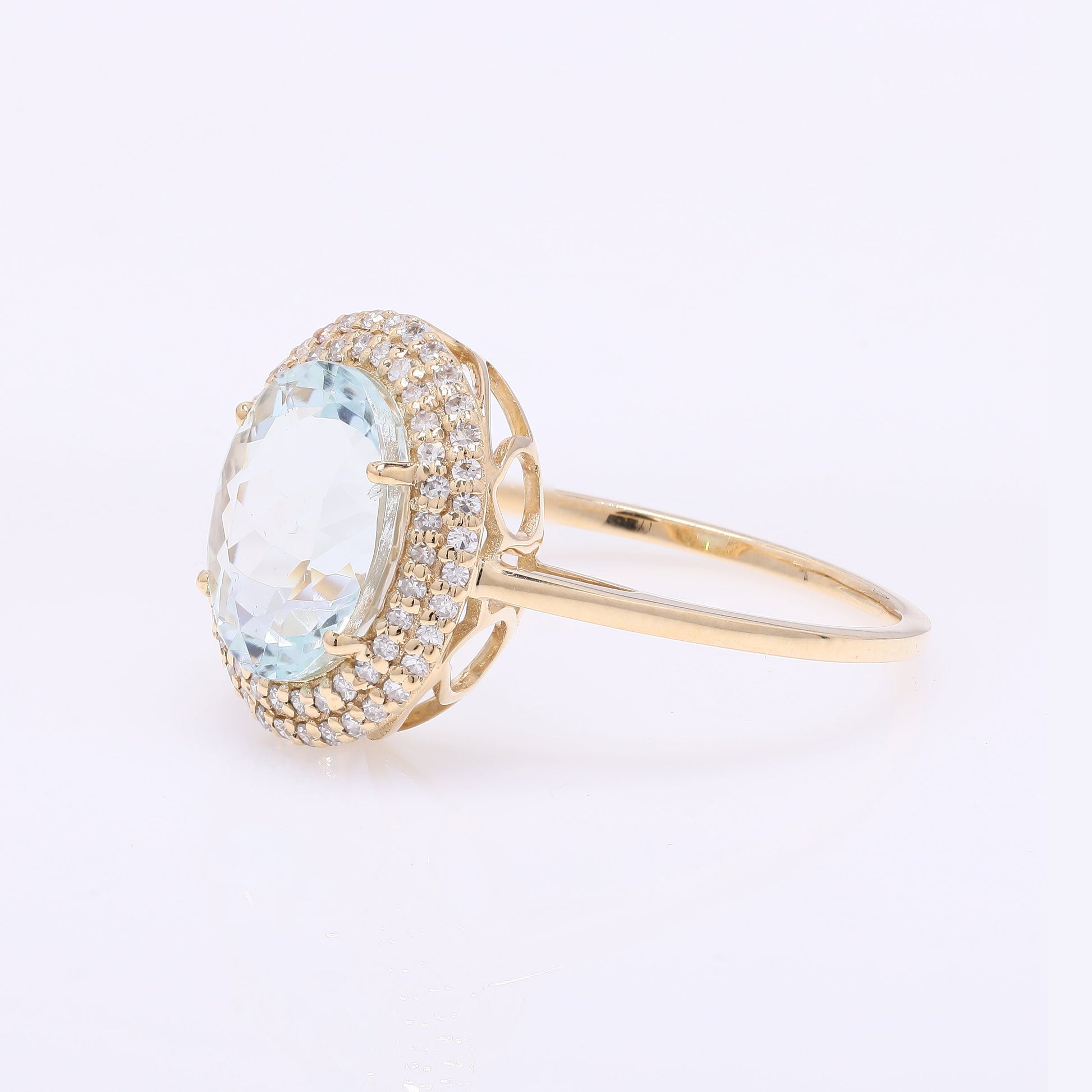 2.64 Ct Oval Mixed Cut Natural Beryl Aquamarine 14K Gold Ring