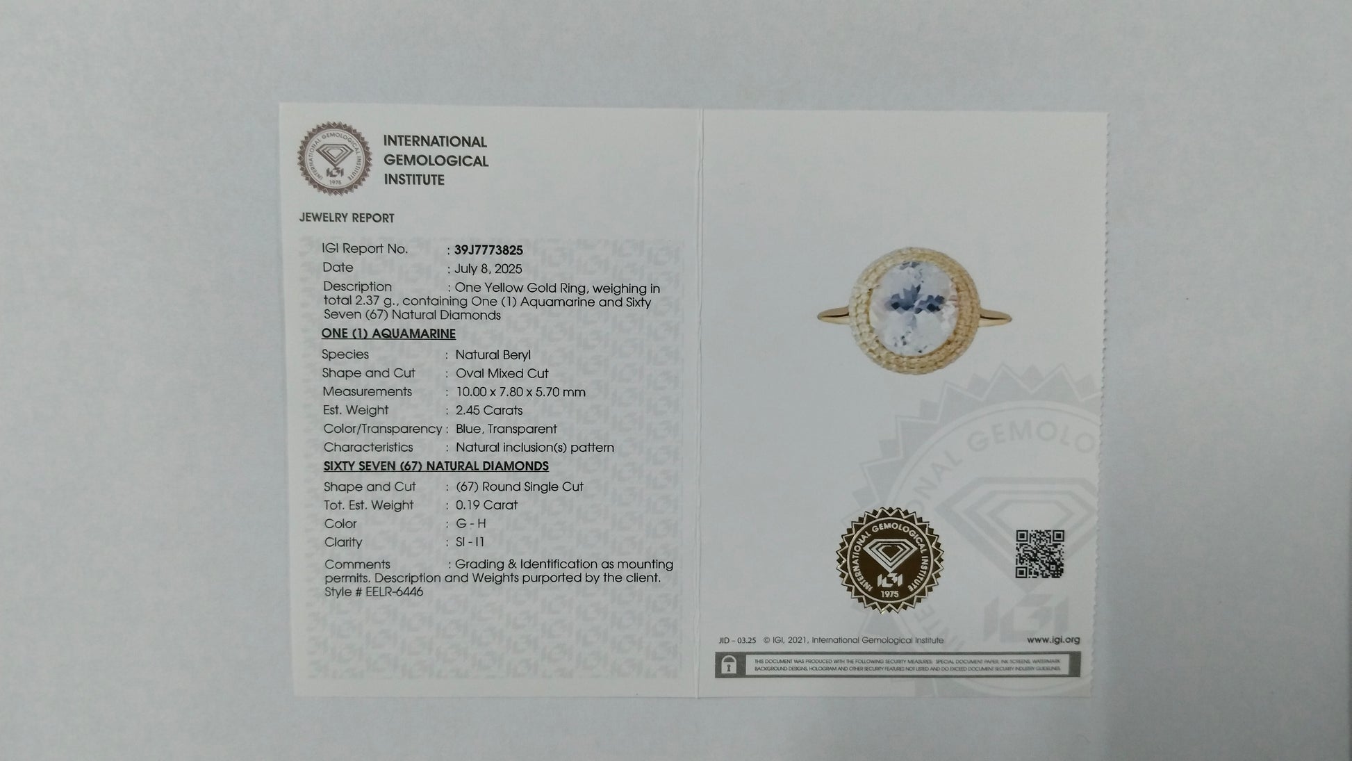 - Lab Name: International Gemological Institute (IGI)
