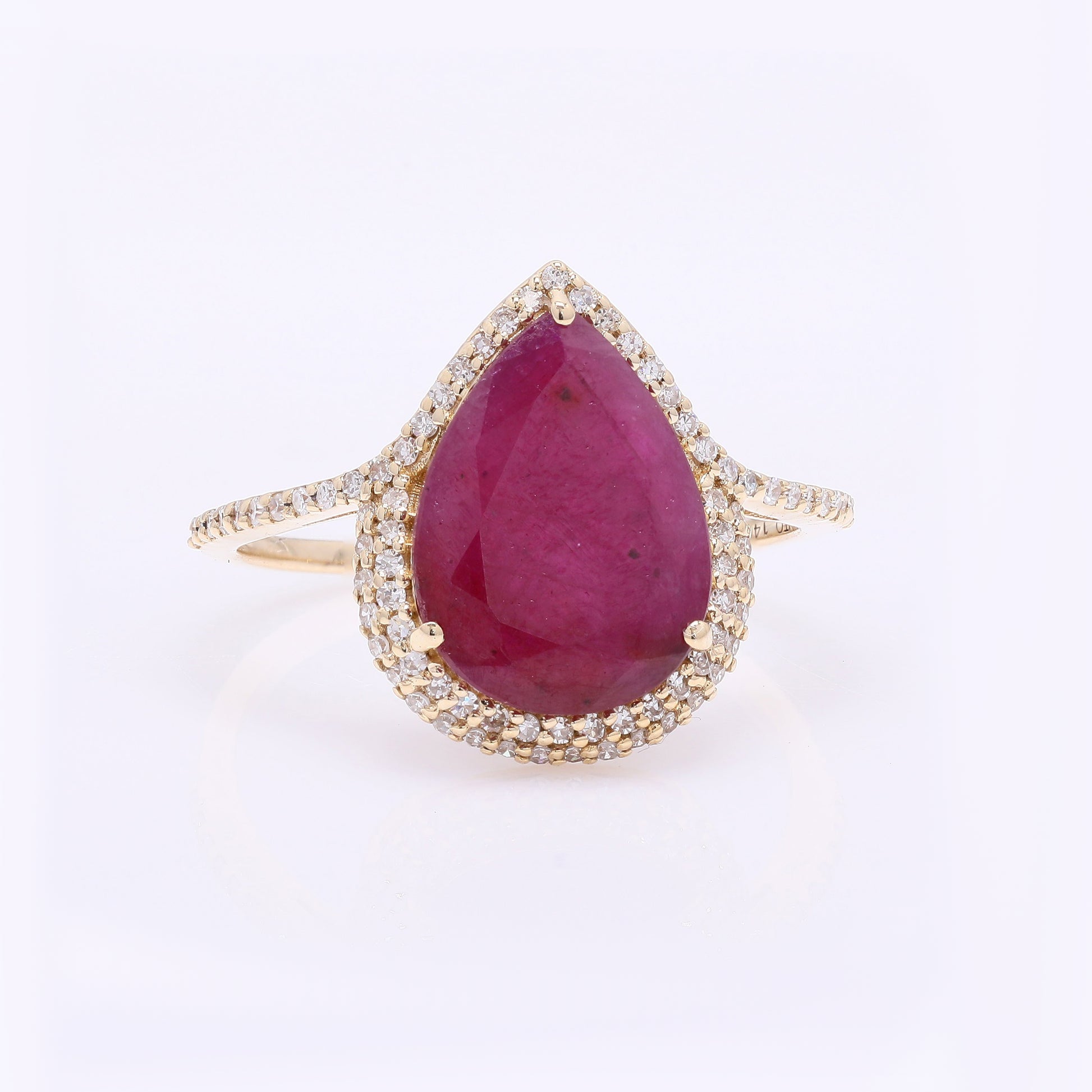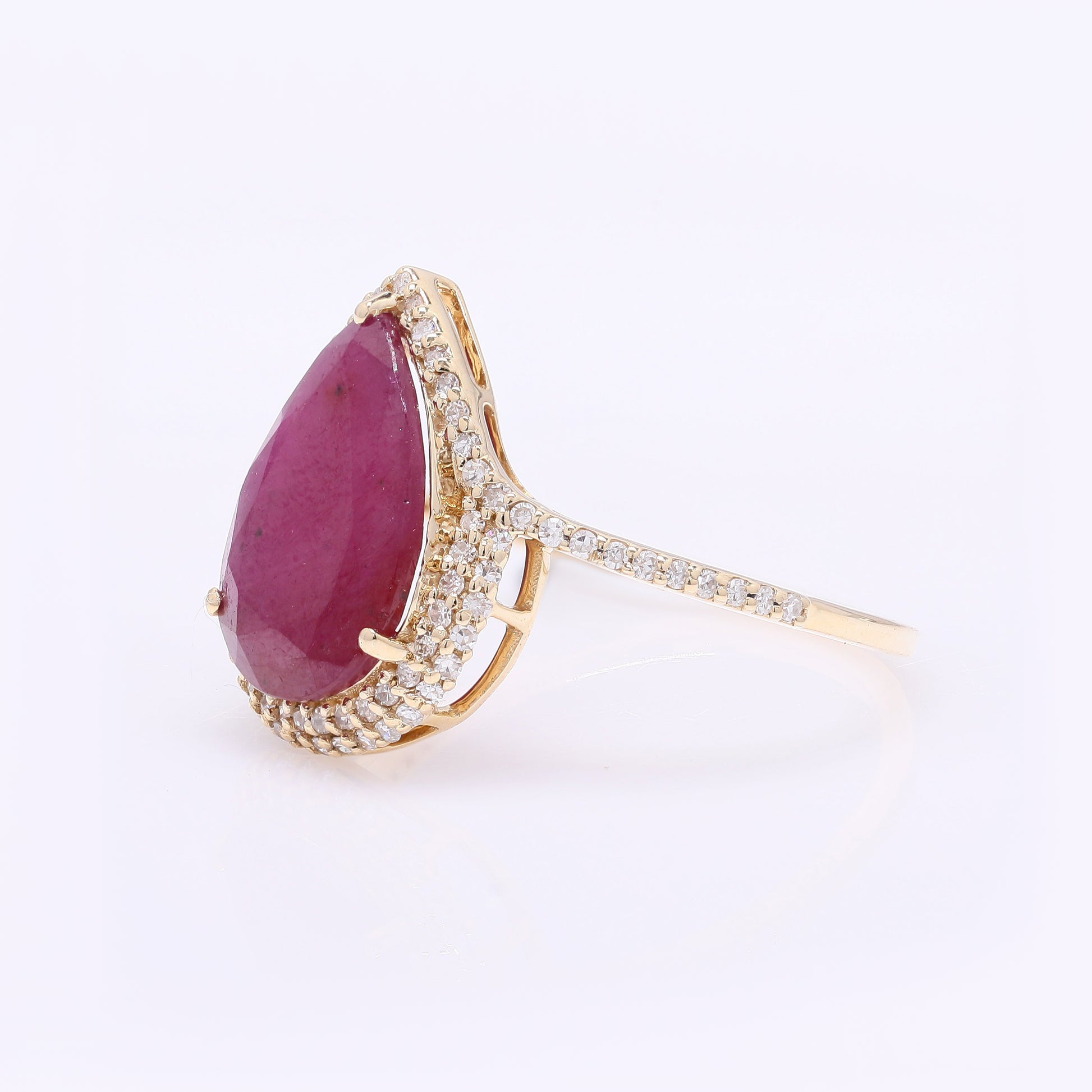 2.65 Ct Pear Cabochon Natural Ruby 14K Gold Ring