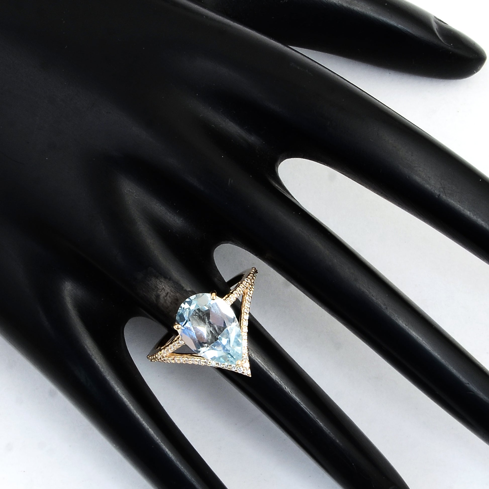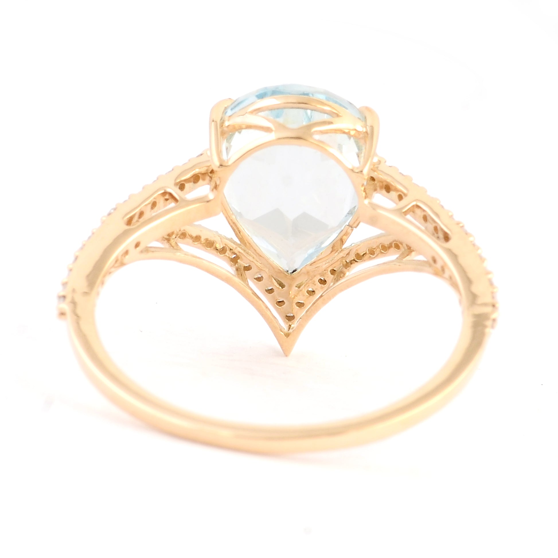 2.65 Ct Pear Mixed Cut Natural Beryl Aquamarine 14K Gold Ring
