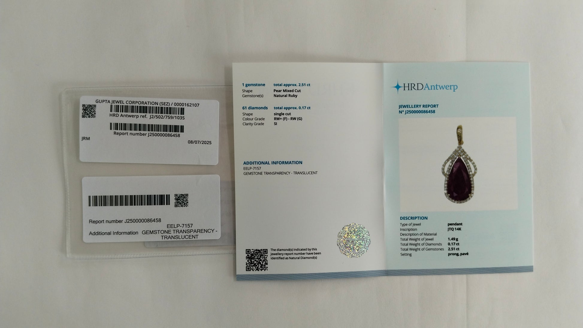 - Certificate Number J250000086458