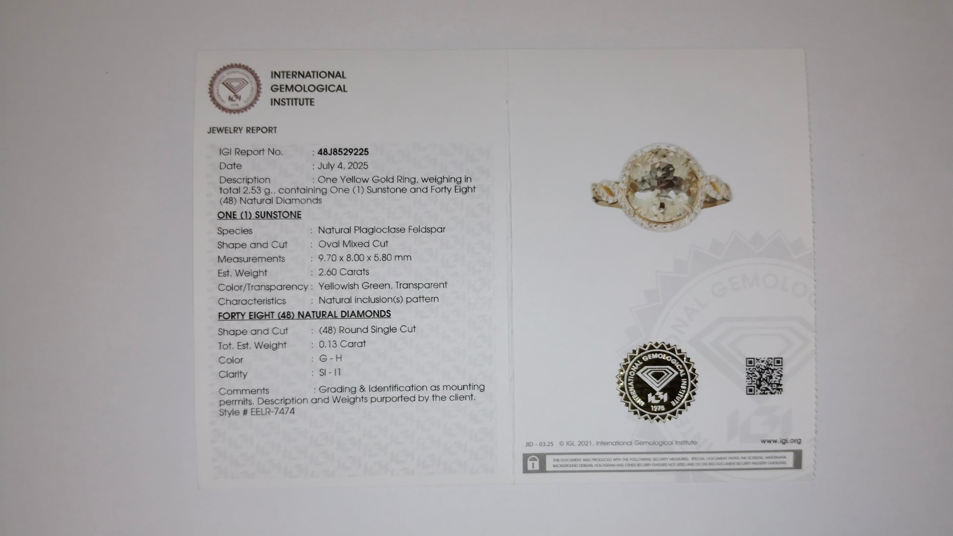 2.73 Ct Oval Mixed Cut Natural Plagioclase Feldspar Sunstone 14K Gold Ring