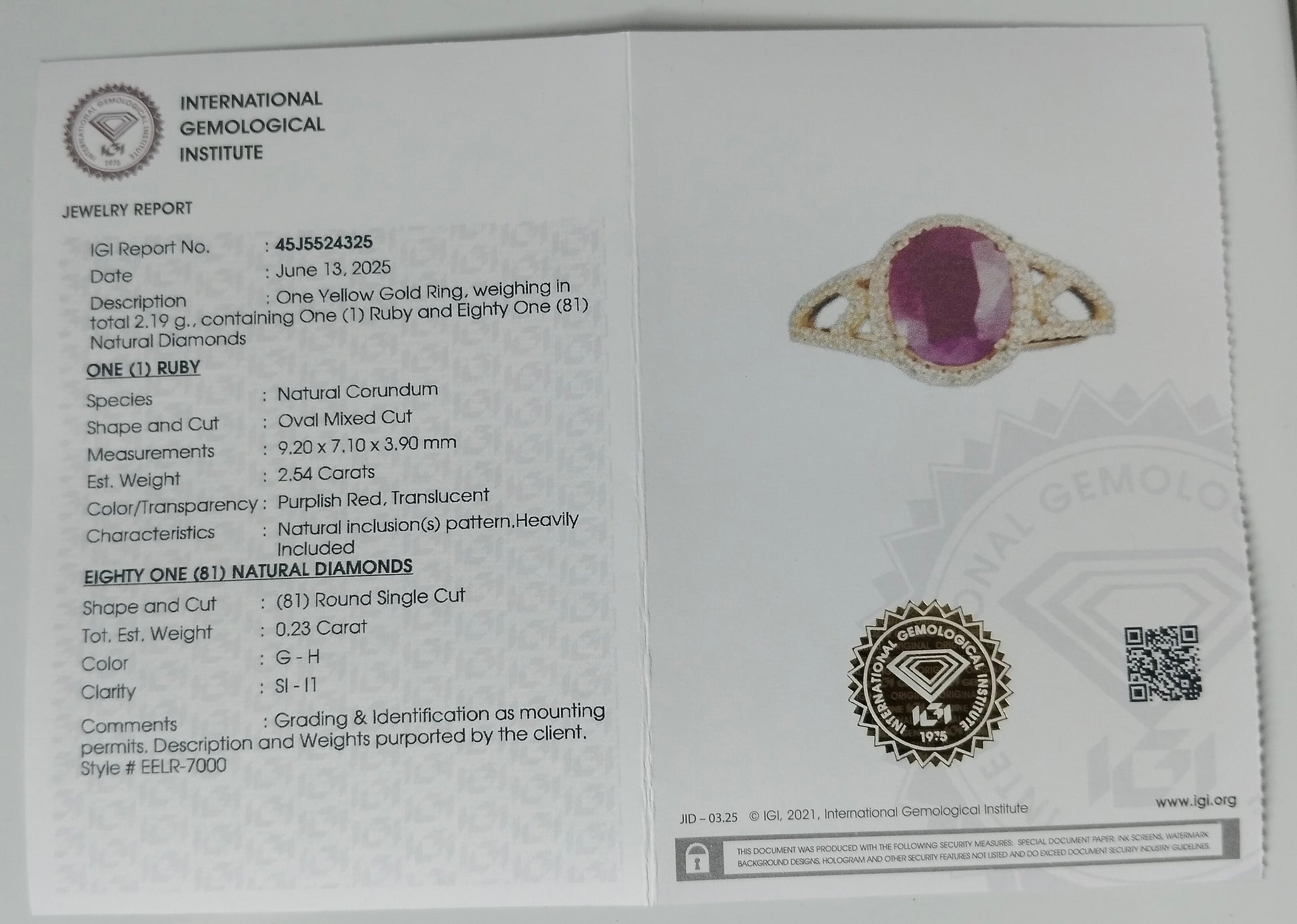 2.77 Total Carat Natural Corundum Ruby 14K Gold Ring