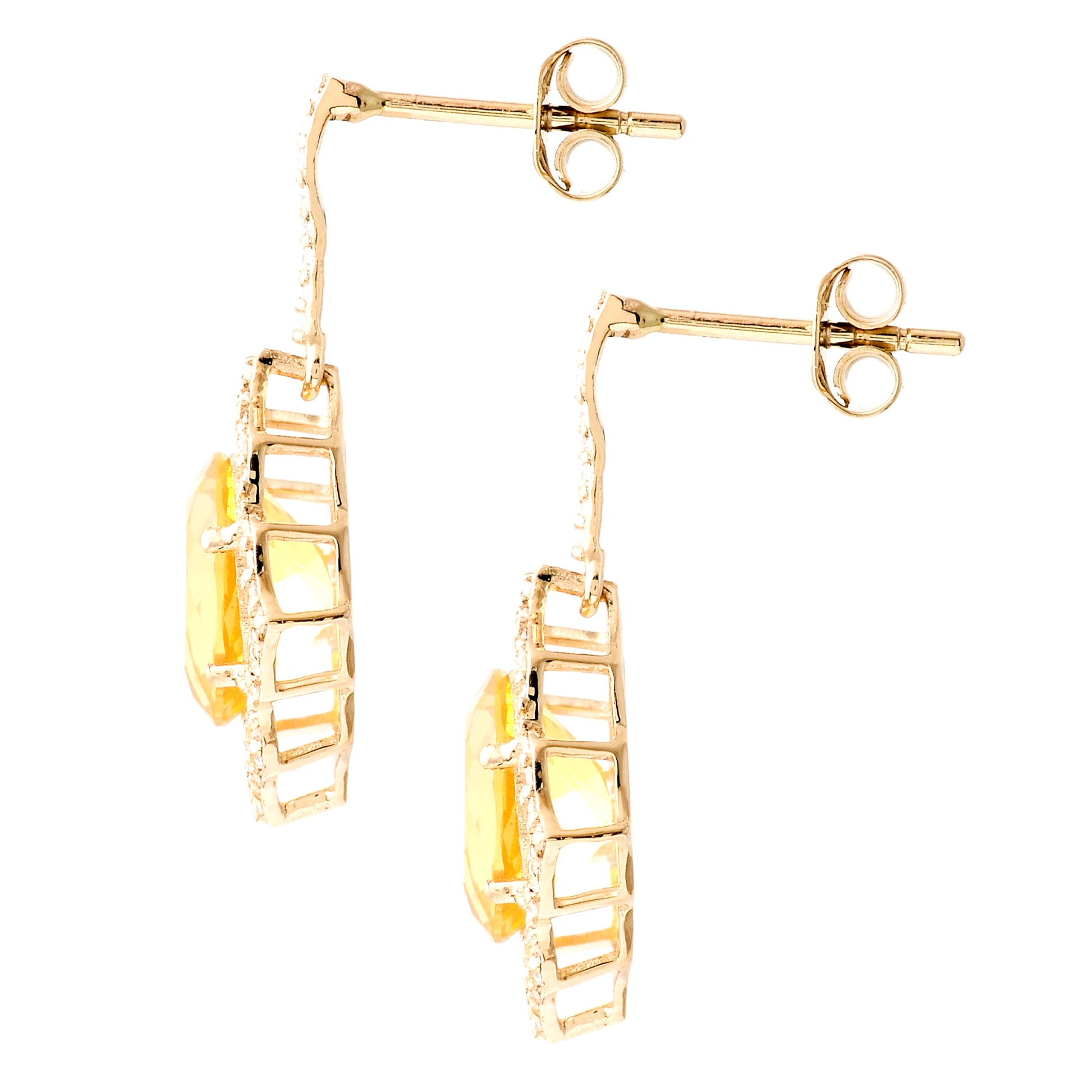 2.77 Total Carat Natural Fire Opal 14K Gold Earrings