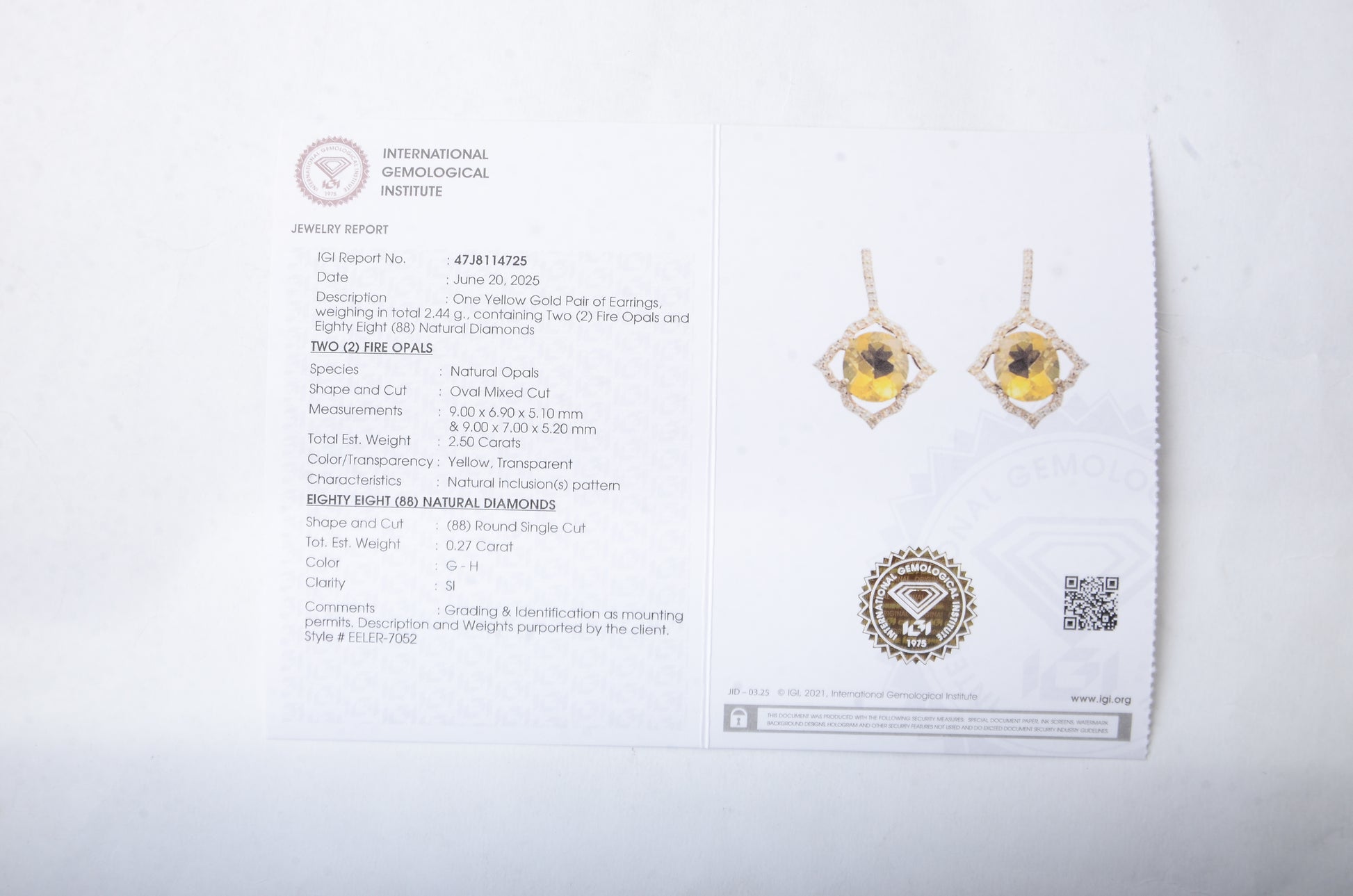 2.77 Ct Oval Mixed Cut Natural Fire Opal 14K Gold Earrings
