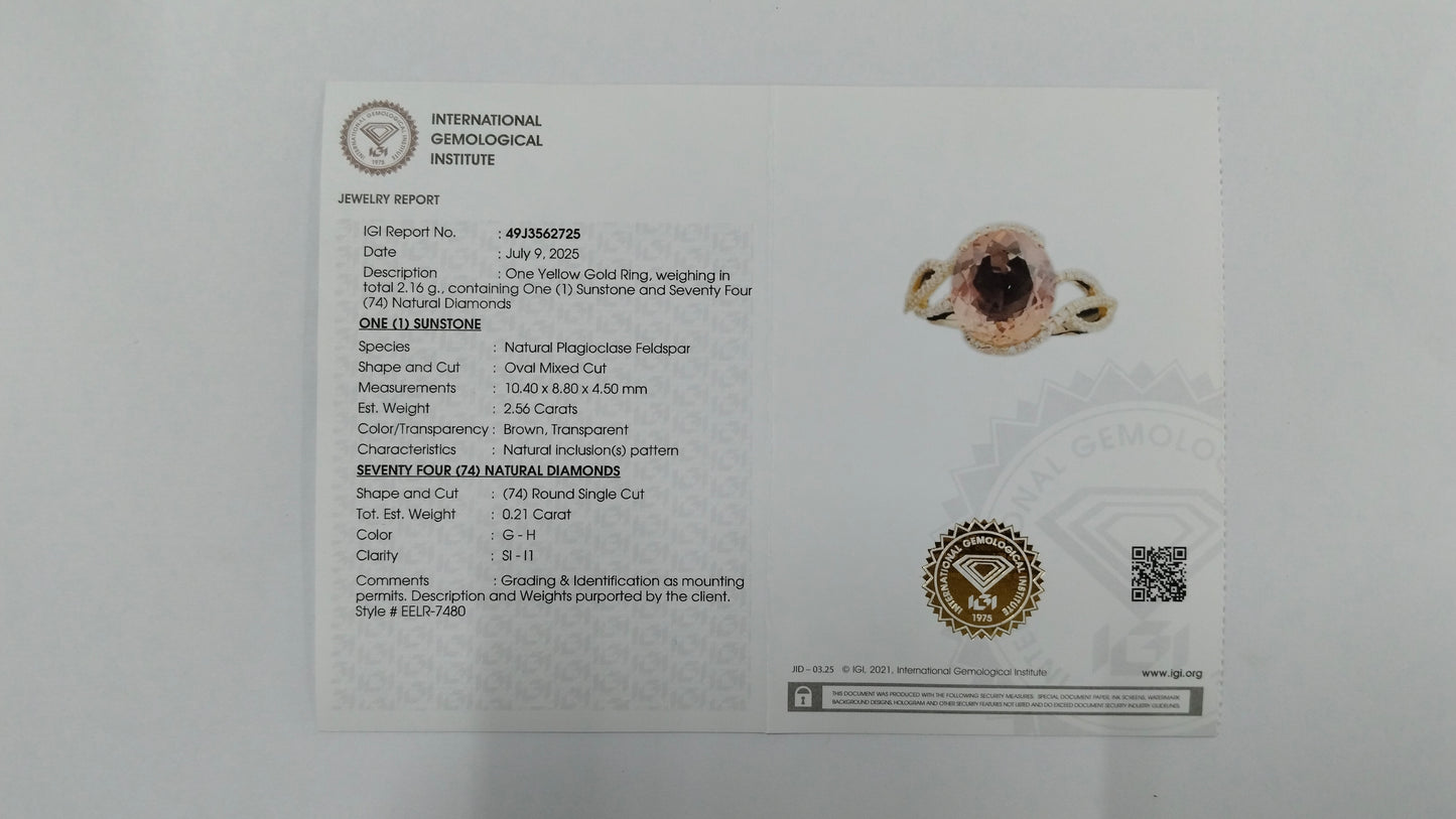 2.77 Ct Oval Mixed Cut Natural Plagioclase Feldspar Sunstone 14K Gold Ring