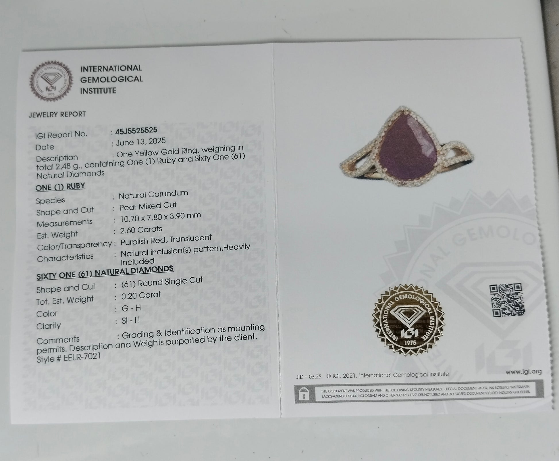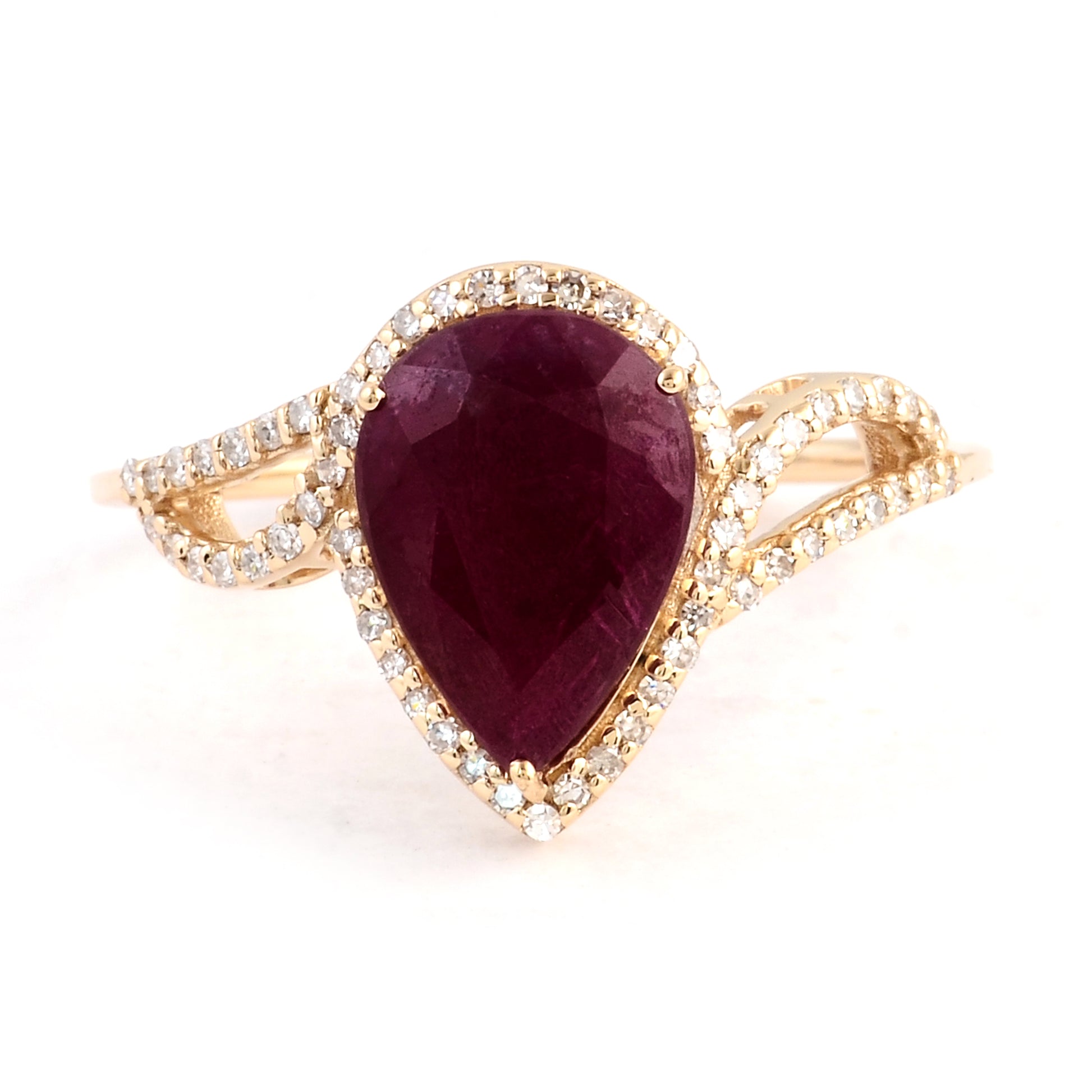 2.80 Ct Pear Mixed Cut Natural Corundum Ruby 14K Gold Ring