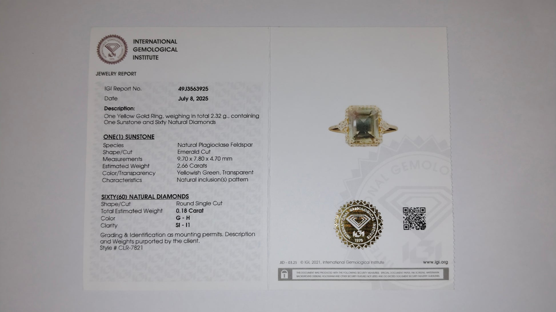 - Lab Name: International Gemological Institute (IGI)