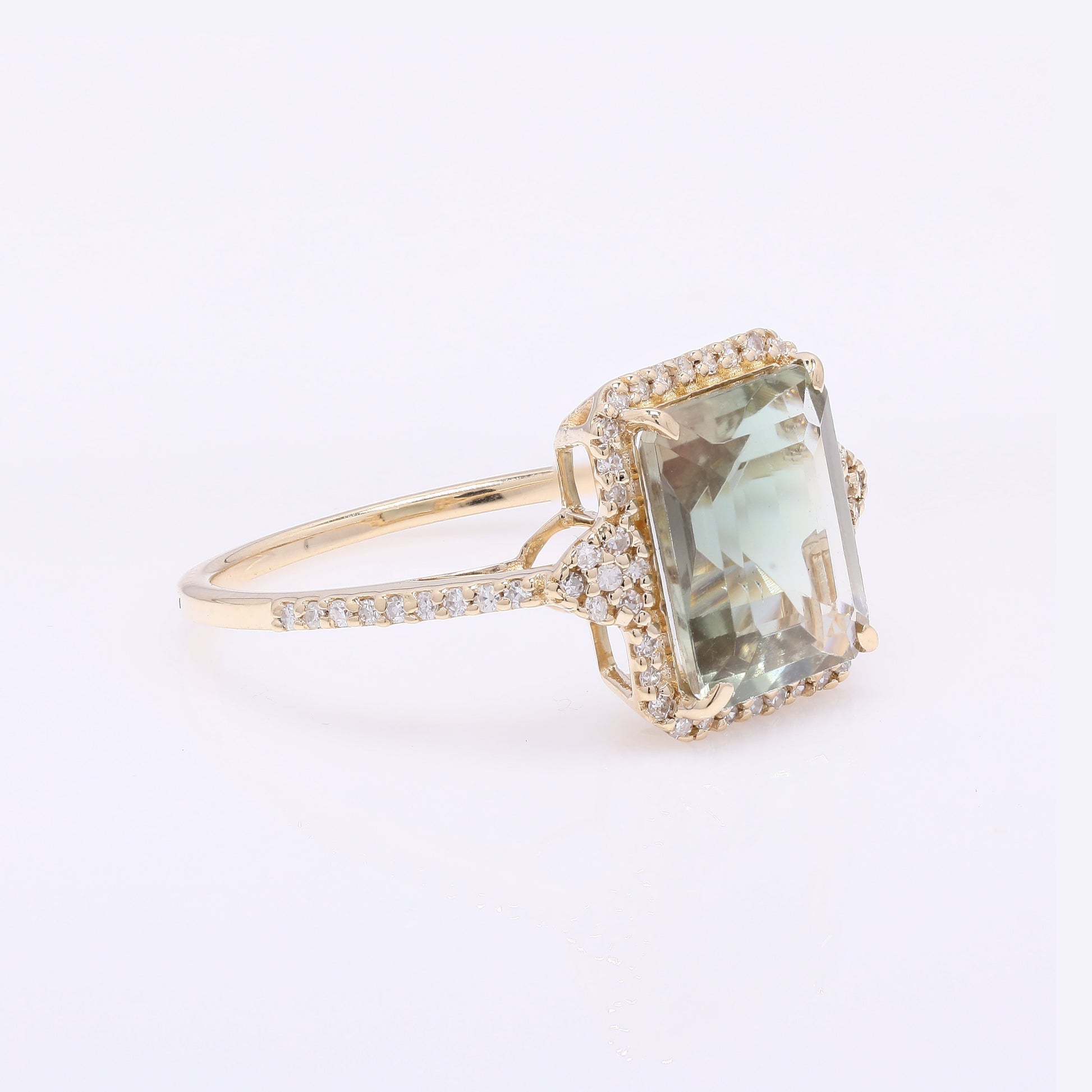2.84 Ct Emerald Cut Natural Plagioclase Feldspar Sunstone 14K Gold Ring