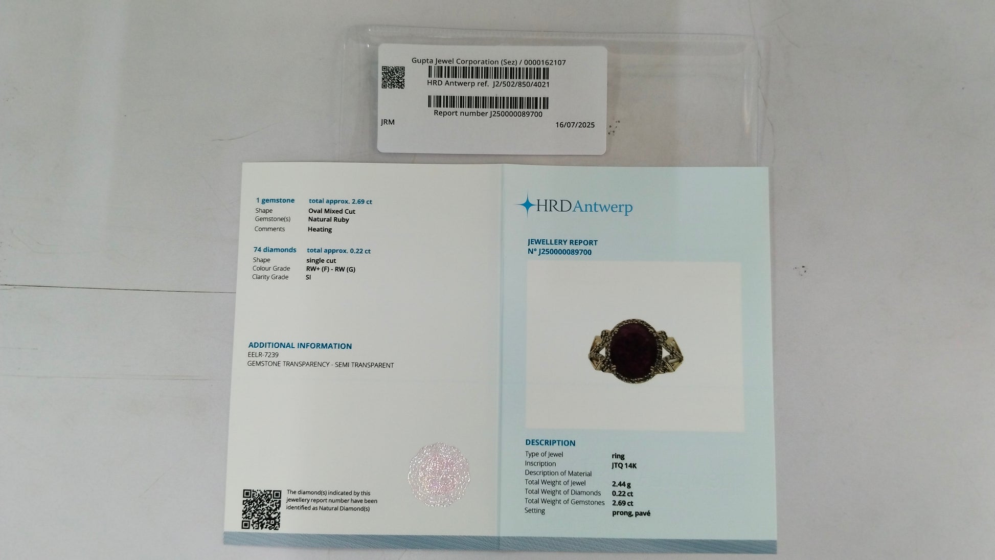 2.91 Ct Oval Mixed Cut Natural Ruby 14K Gold Ring