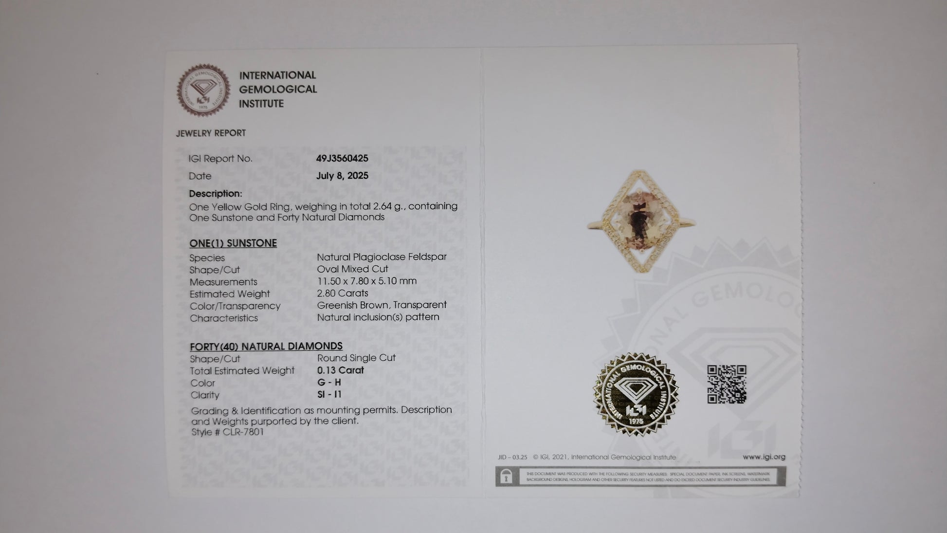 - Lab Name: International Gemological Institute (IGI)