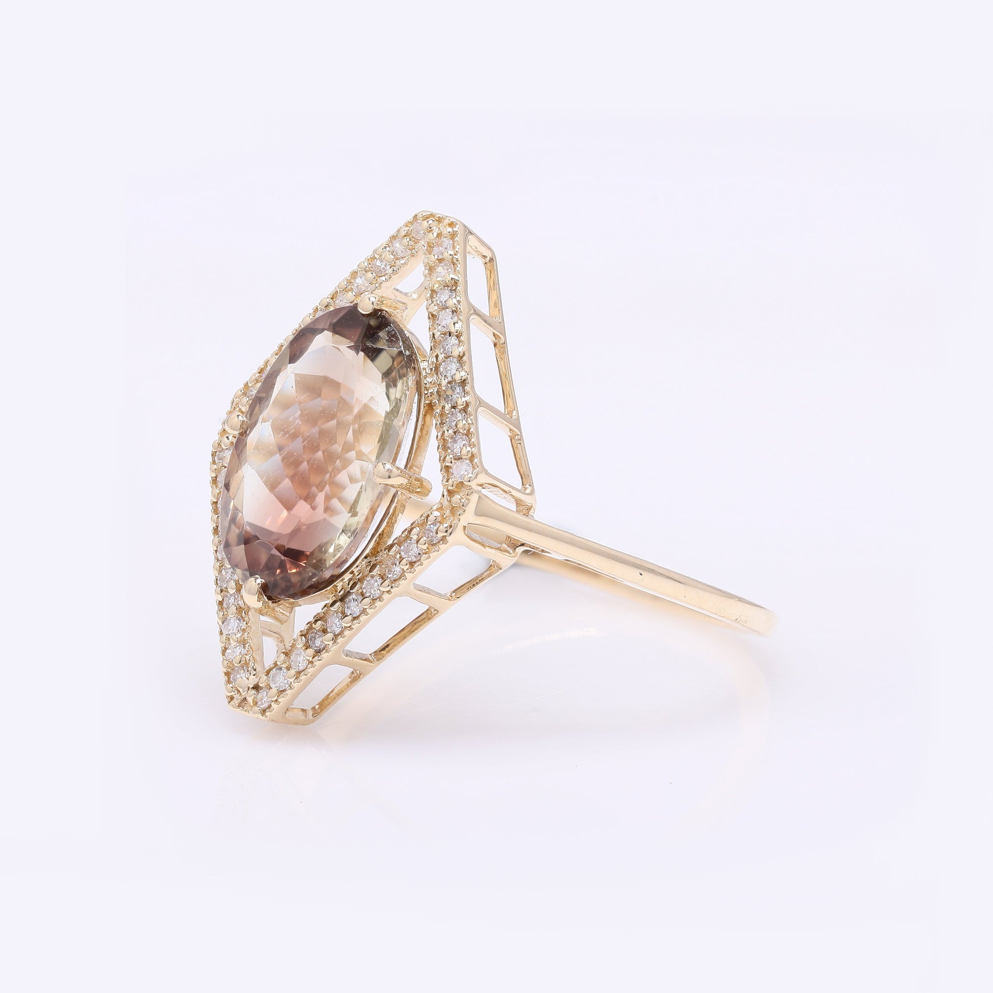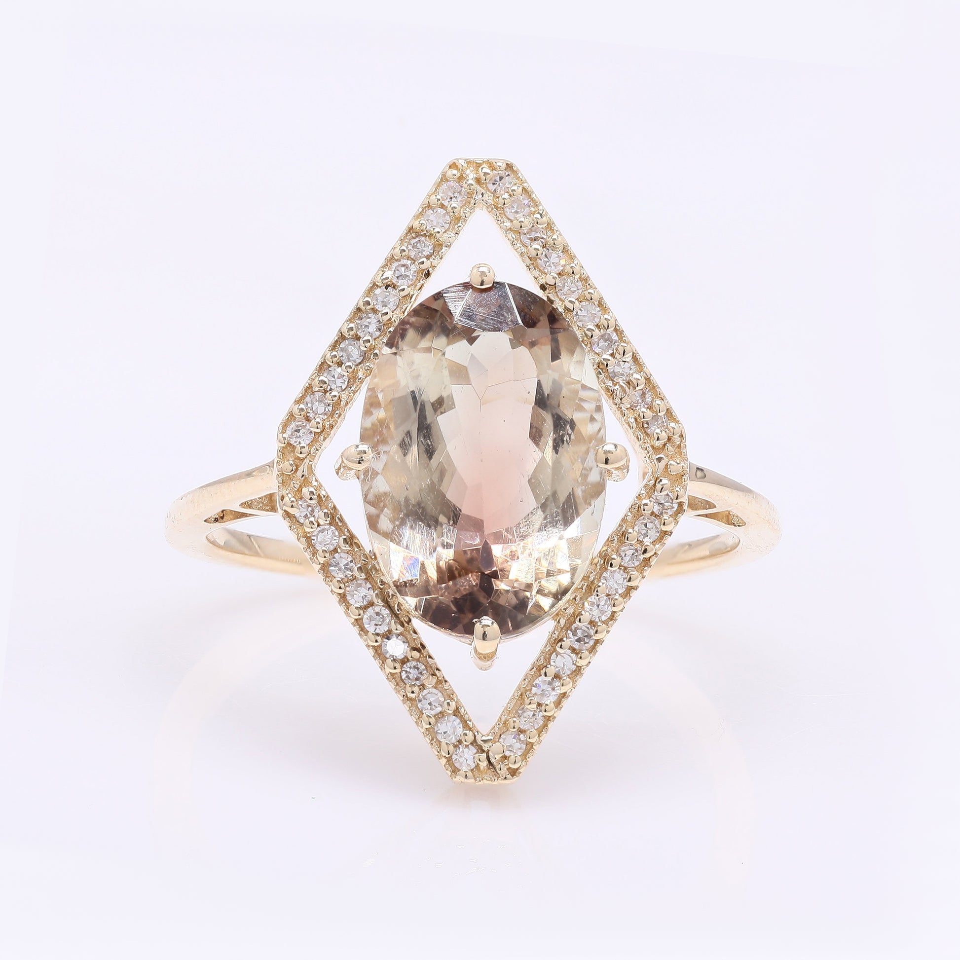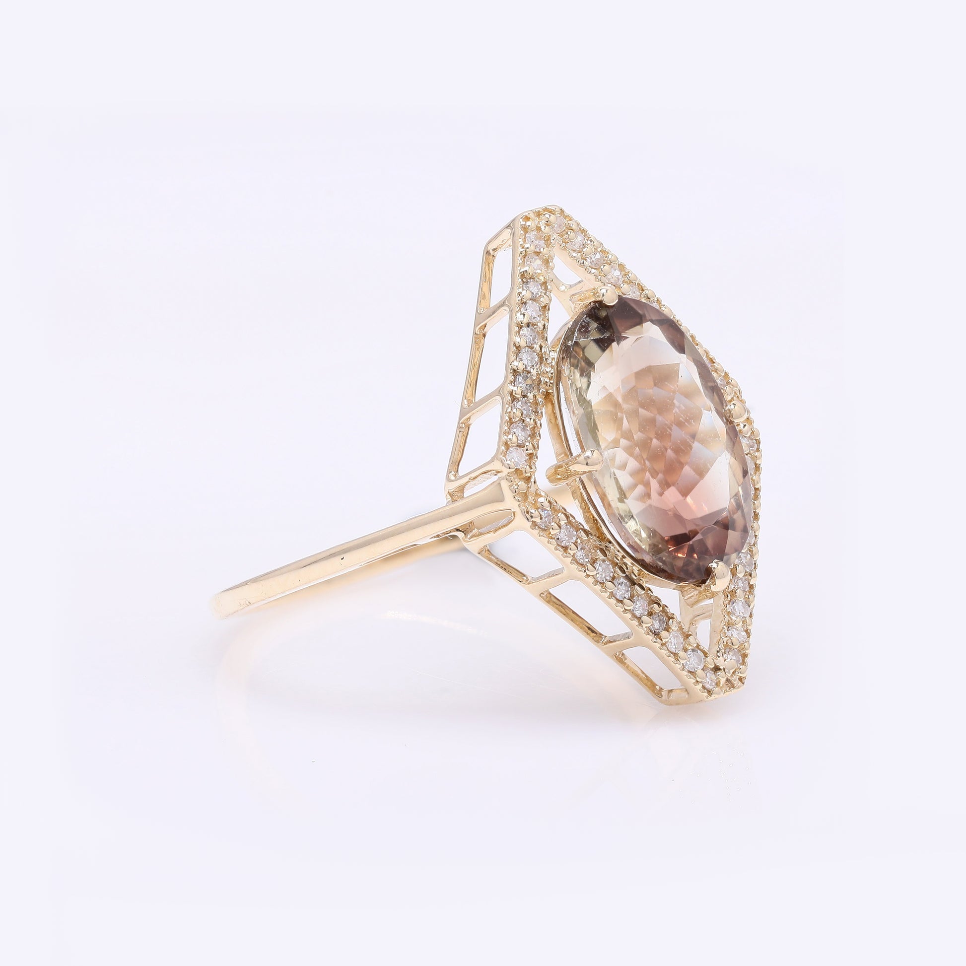 2.93 Ct Oval Mixed Cut Natural Plagioclase Feldspar Sunstone 14K Gold Ring