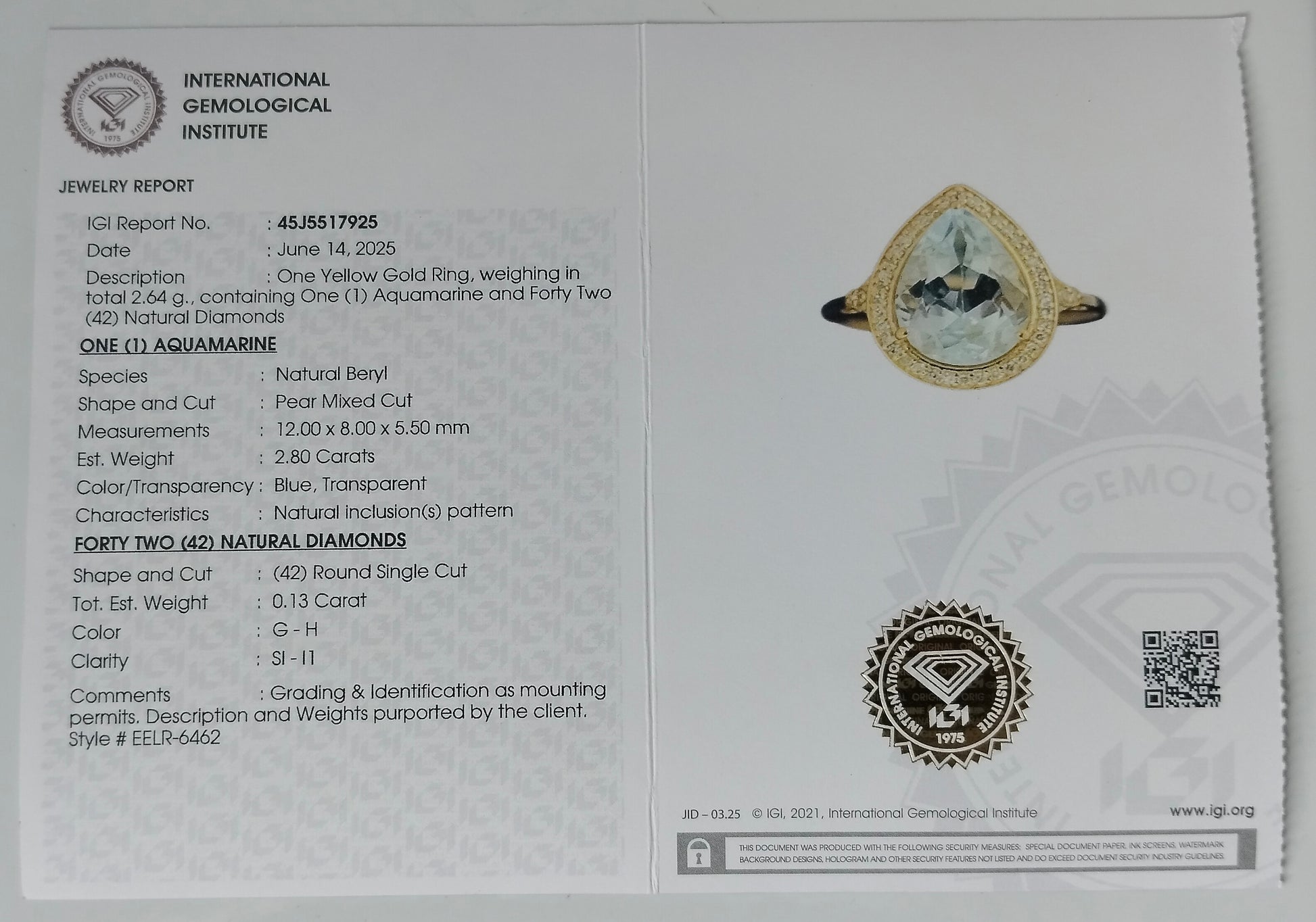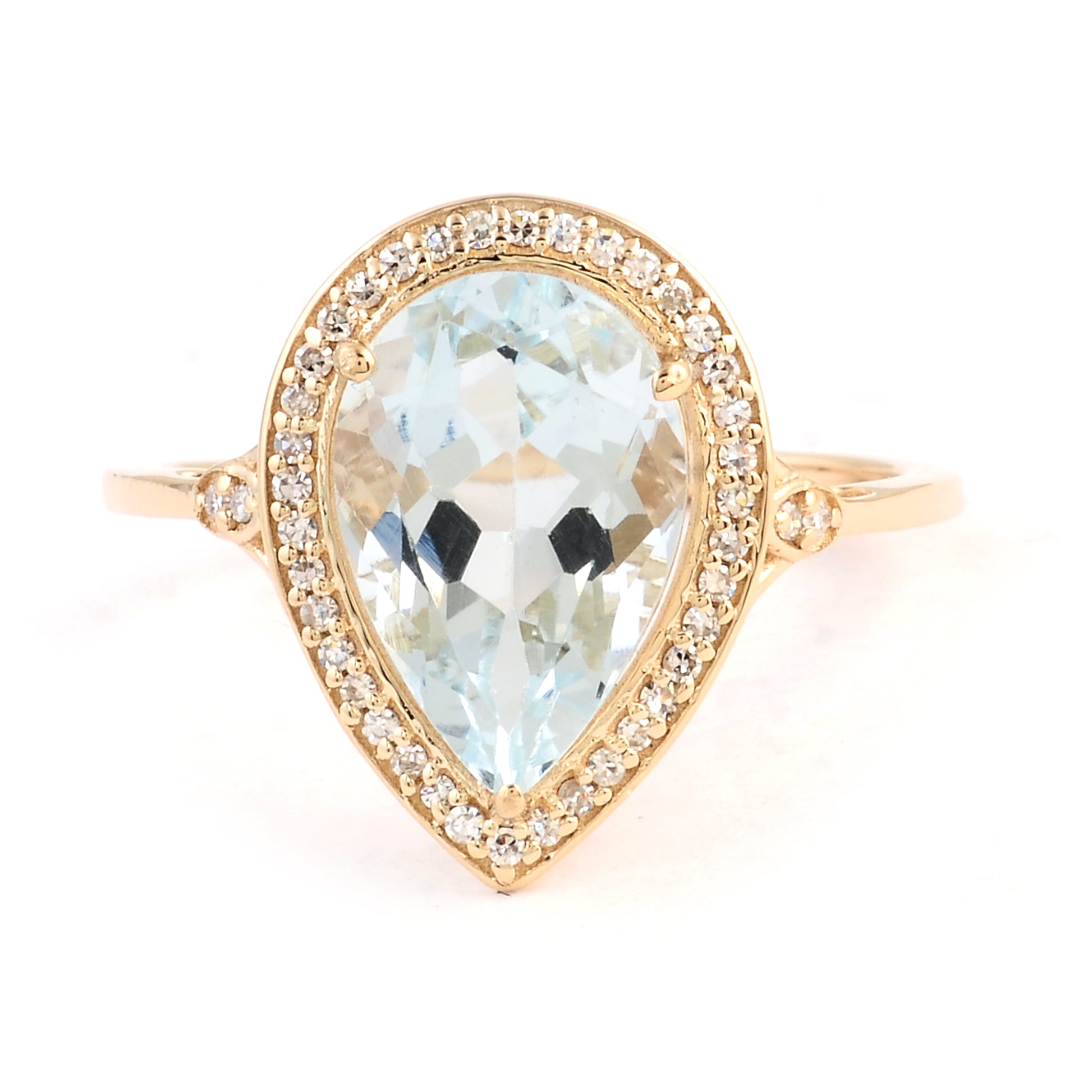 2.93 Ct Pear Mixed Cut Natural Beryl Aquamarine 14K Gold Ring