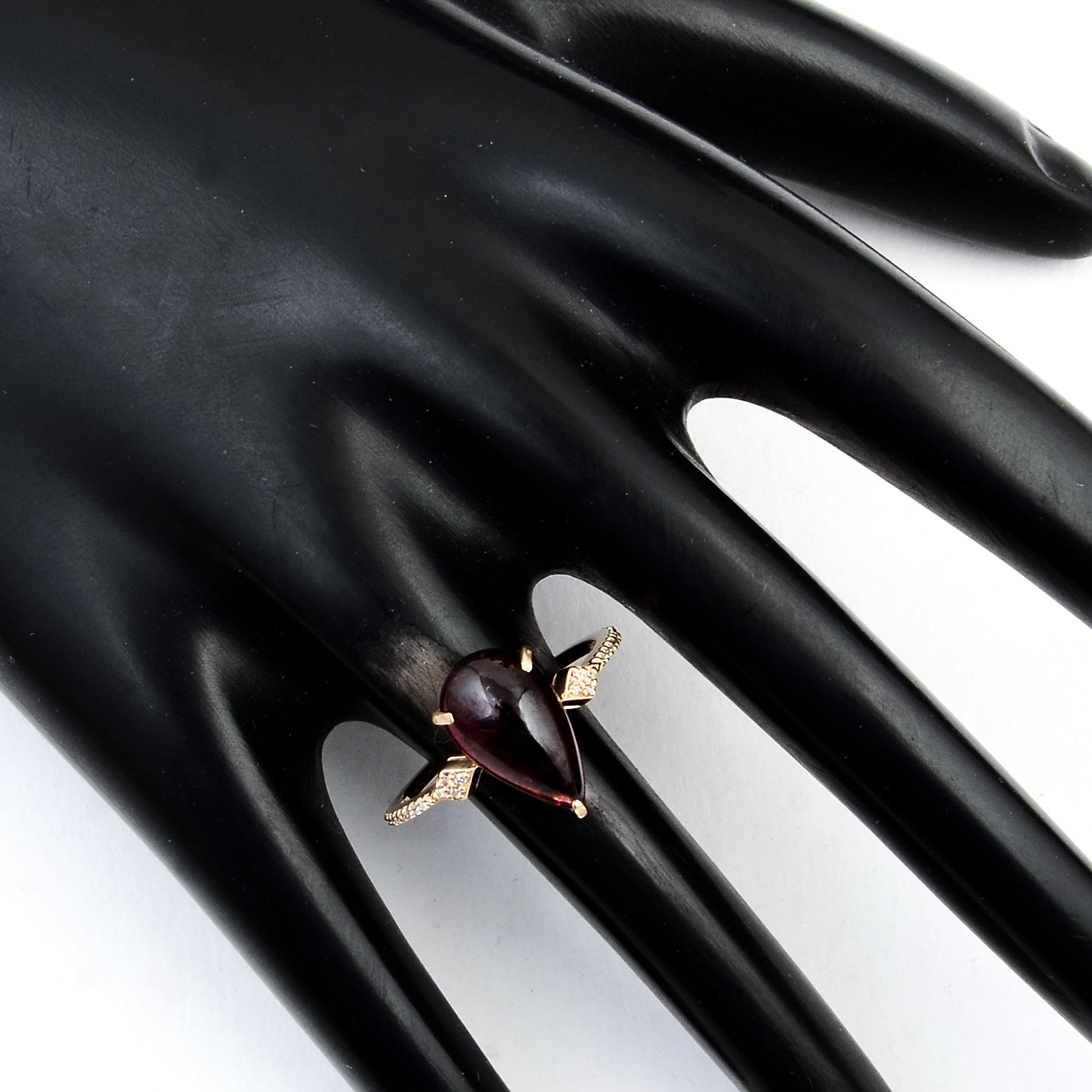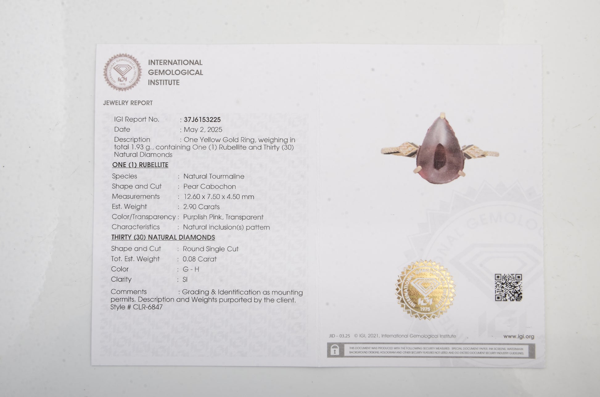 2.98 Ct Pear Cabochon Natural Tourmaline 14K Gold Ring