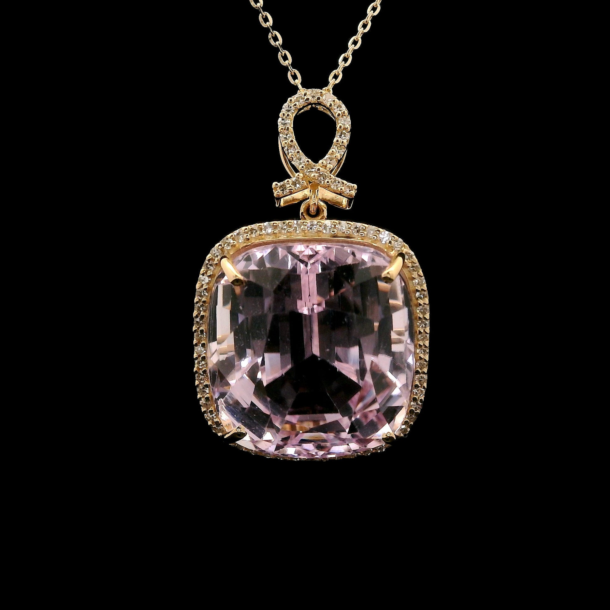 20.85 Ct Cushion Kunzite 14K Gold Pendant