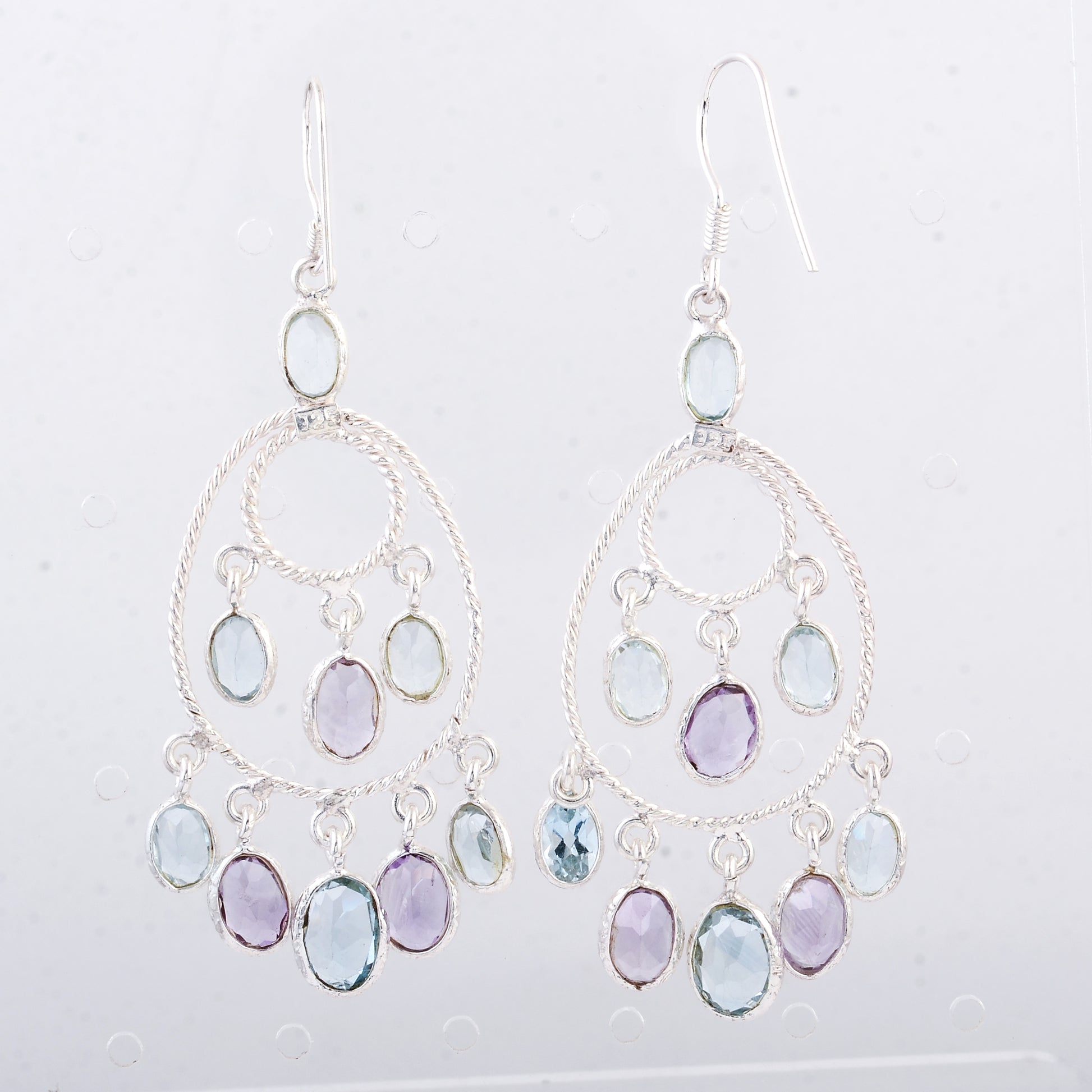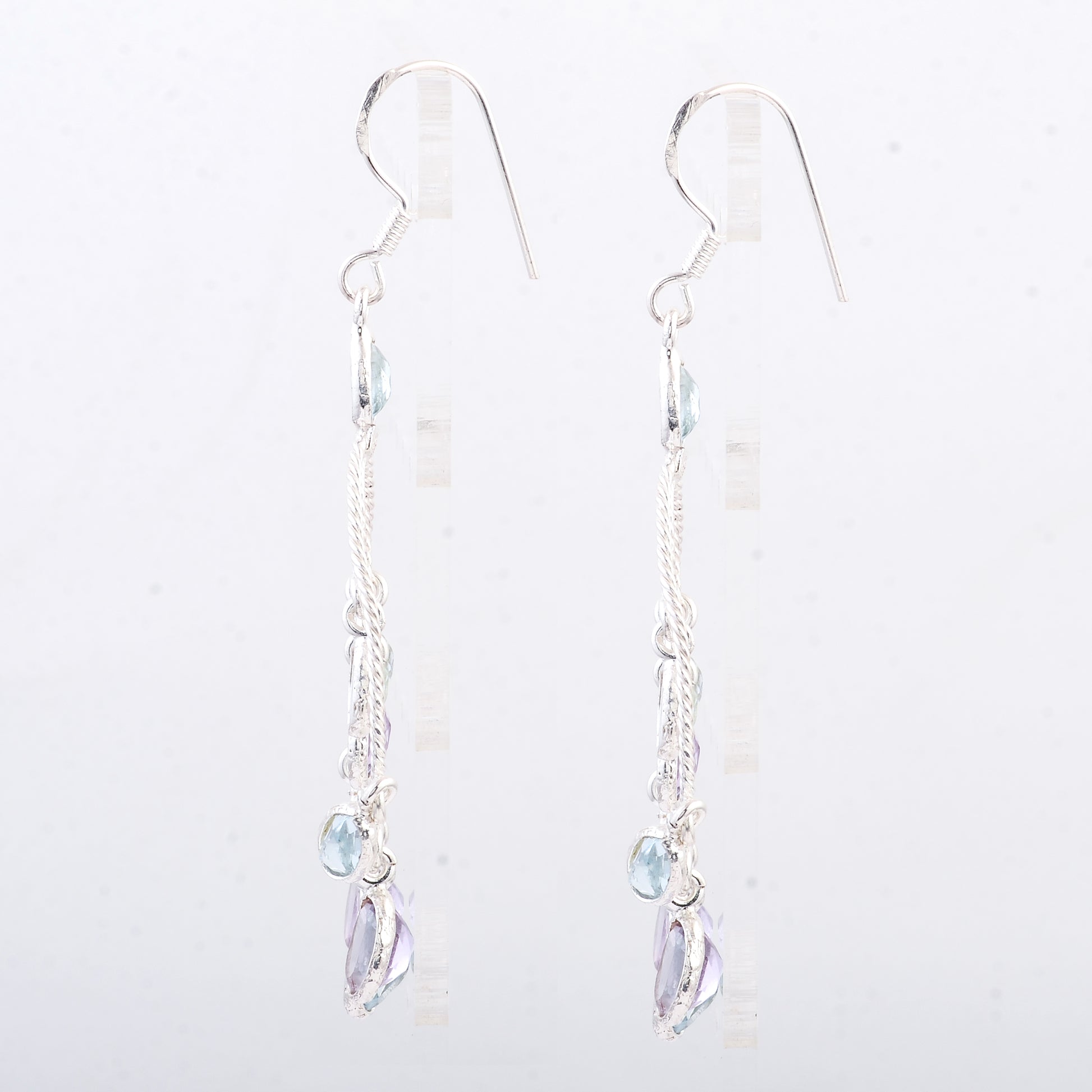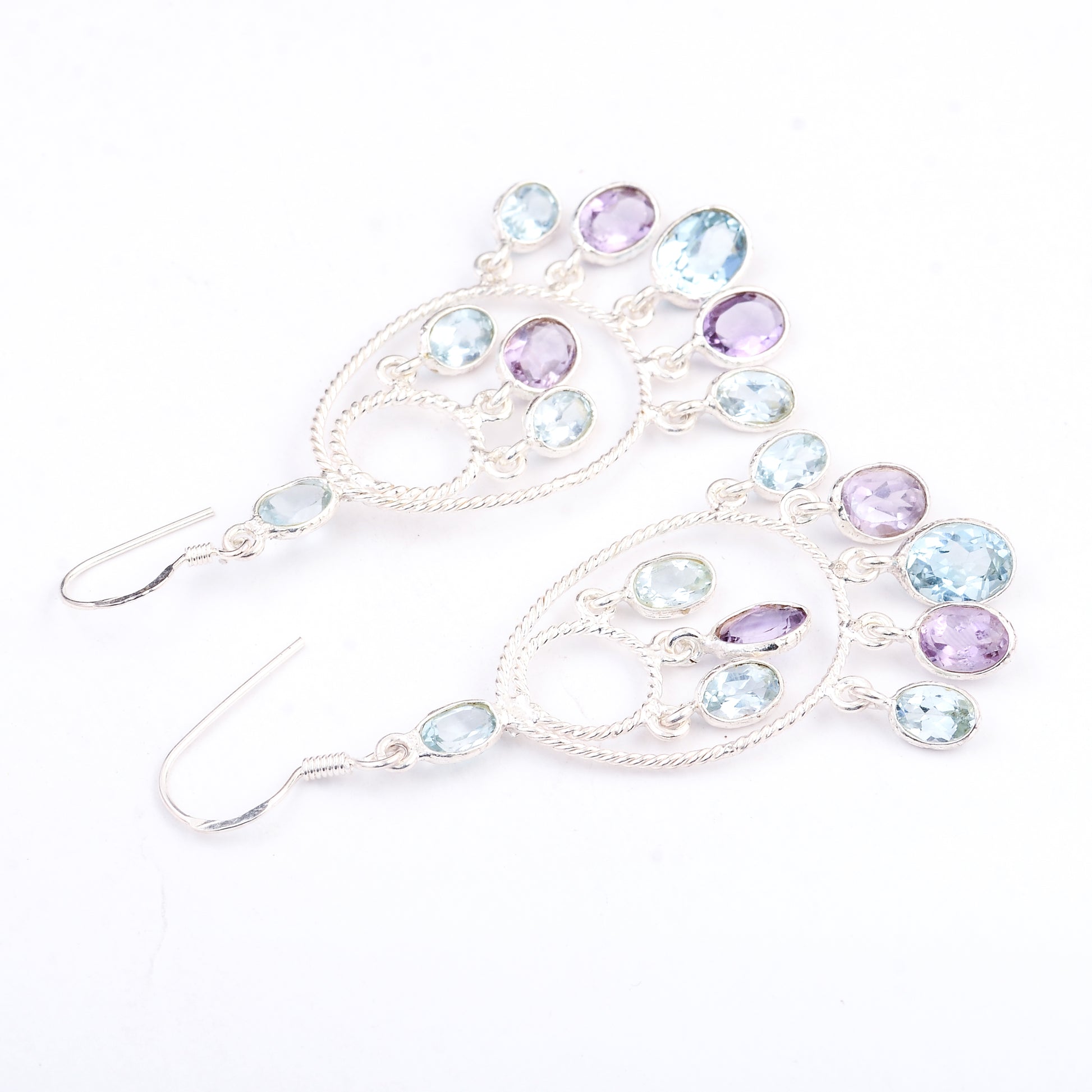 20.90 Ct Amethyst, Blue Topaz 925 Sterling Silver Earrings