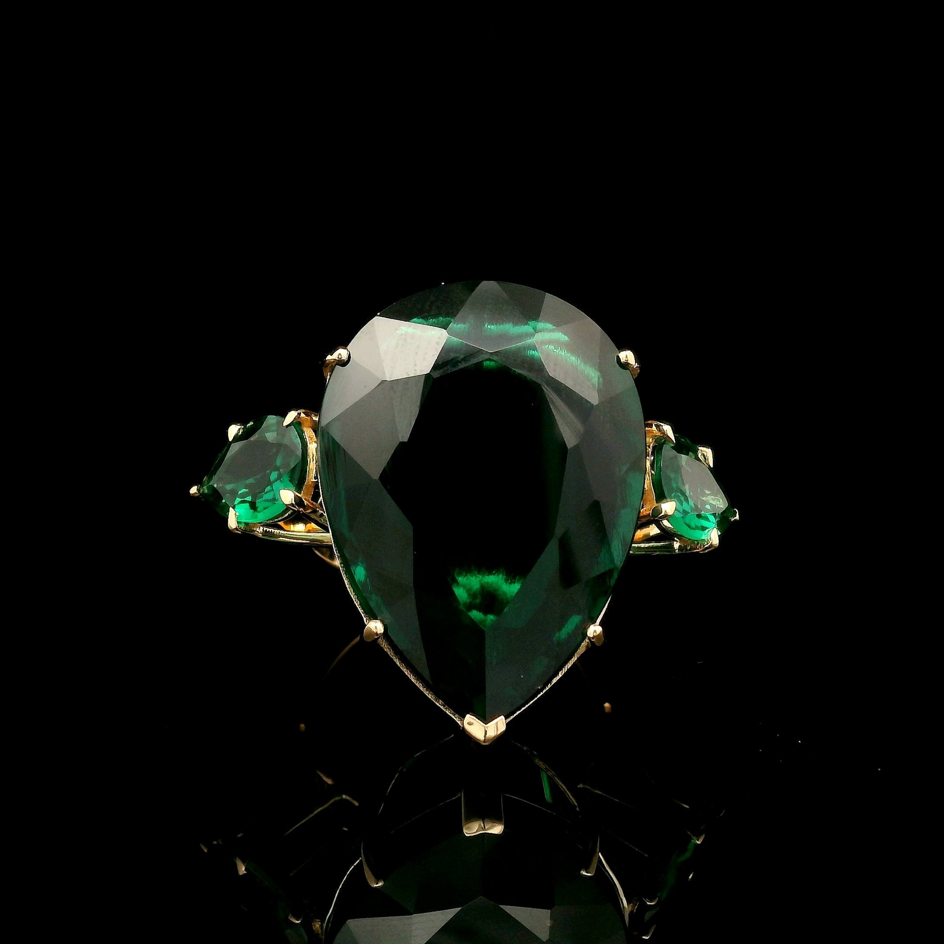 22.32 Ct Pear Mixed Cut Lab Grown Emerald 14K Gold Ring