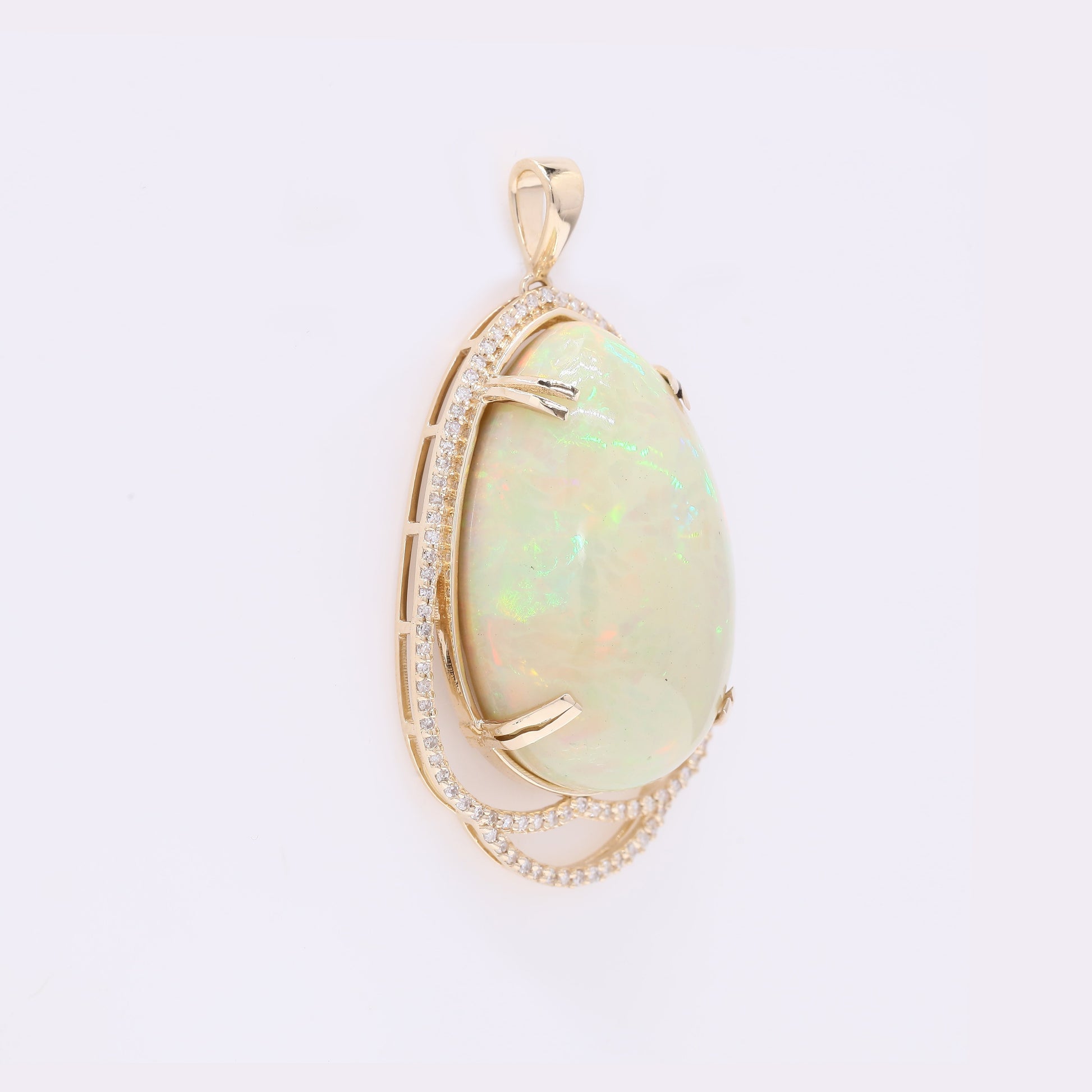 22.46 Ct Pear Cabochon Natural Opal 14K Gold Pendant