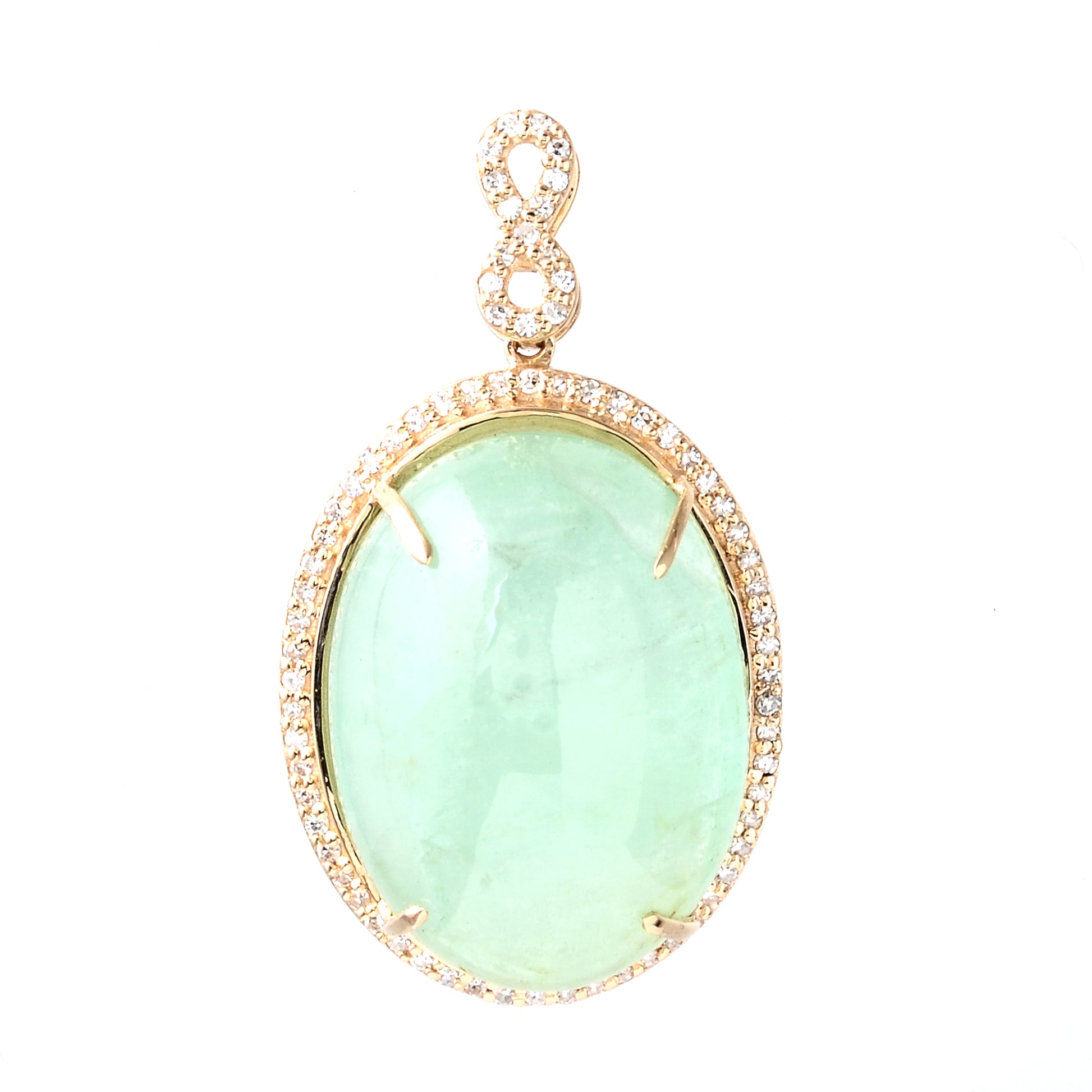 23.49 Ct Oval Cabochon Natural Beryl Emerald 14K Gold Pendant