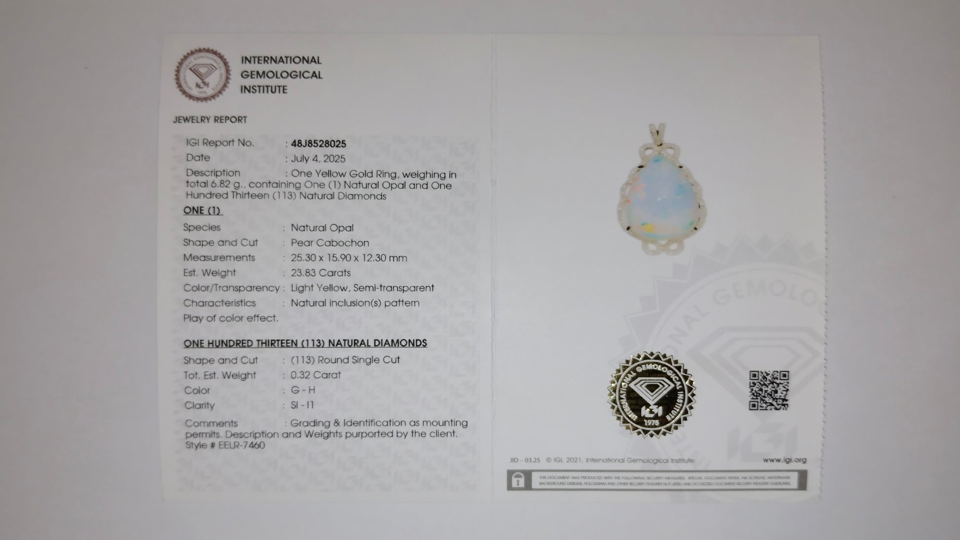 24.15 Total Carat Natural Opal 14K Gold Pendant