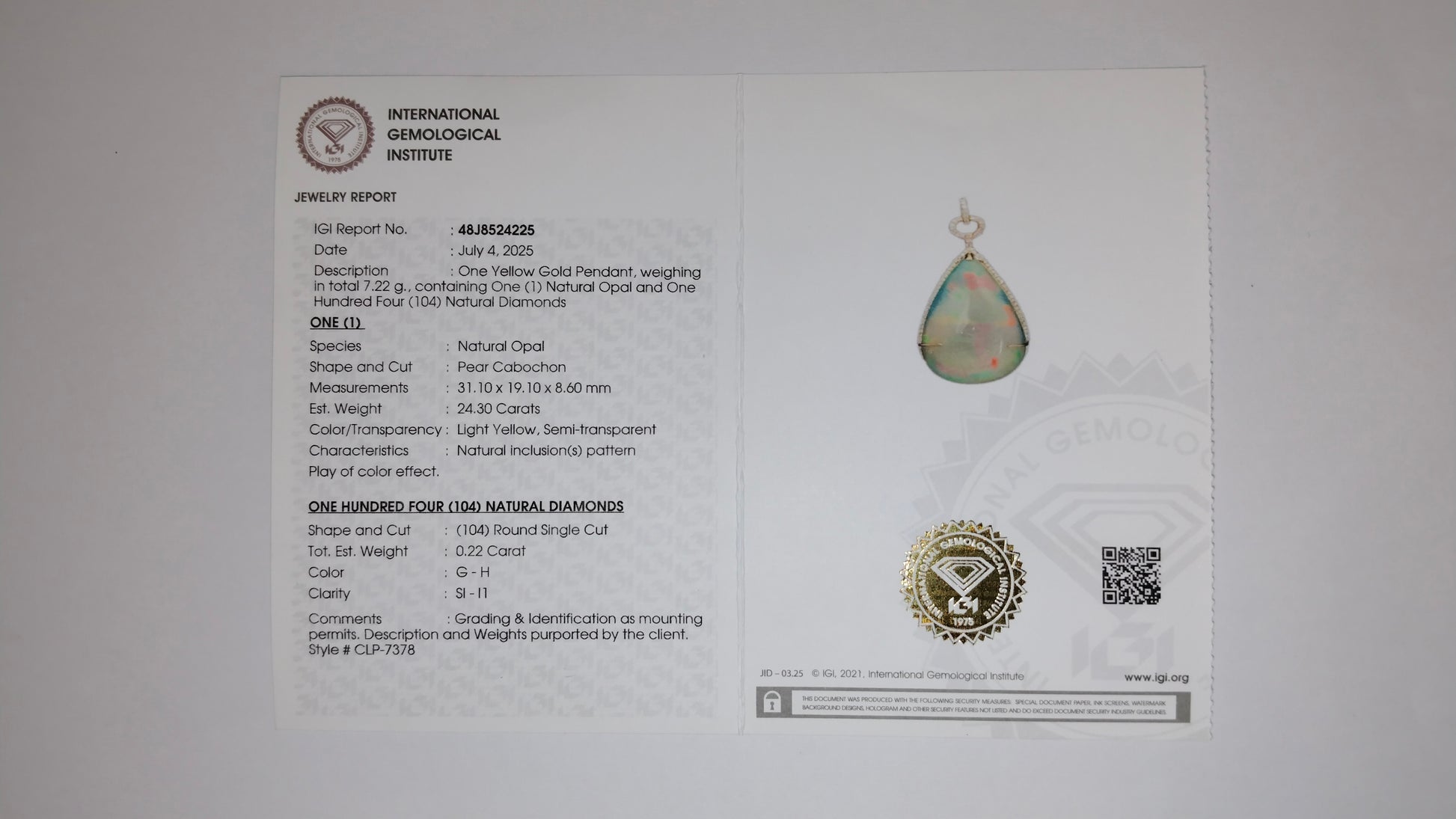 24.52 Total Carat Natural Opal 14K Gold Pendant