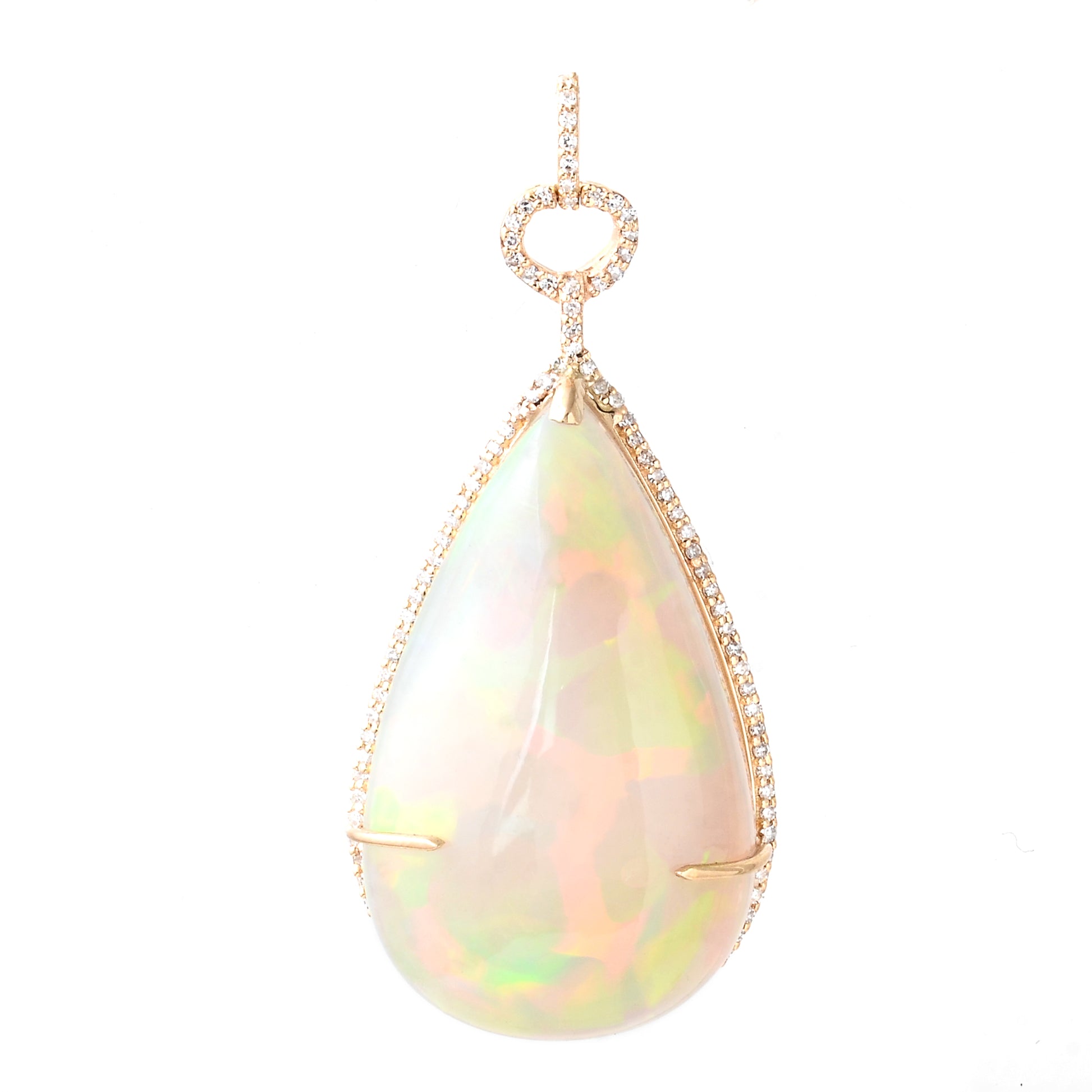 24.52 Ct Pear Cabochon Natural Opal 14K Gold Pendant