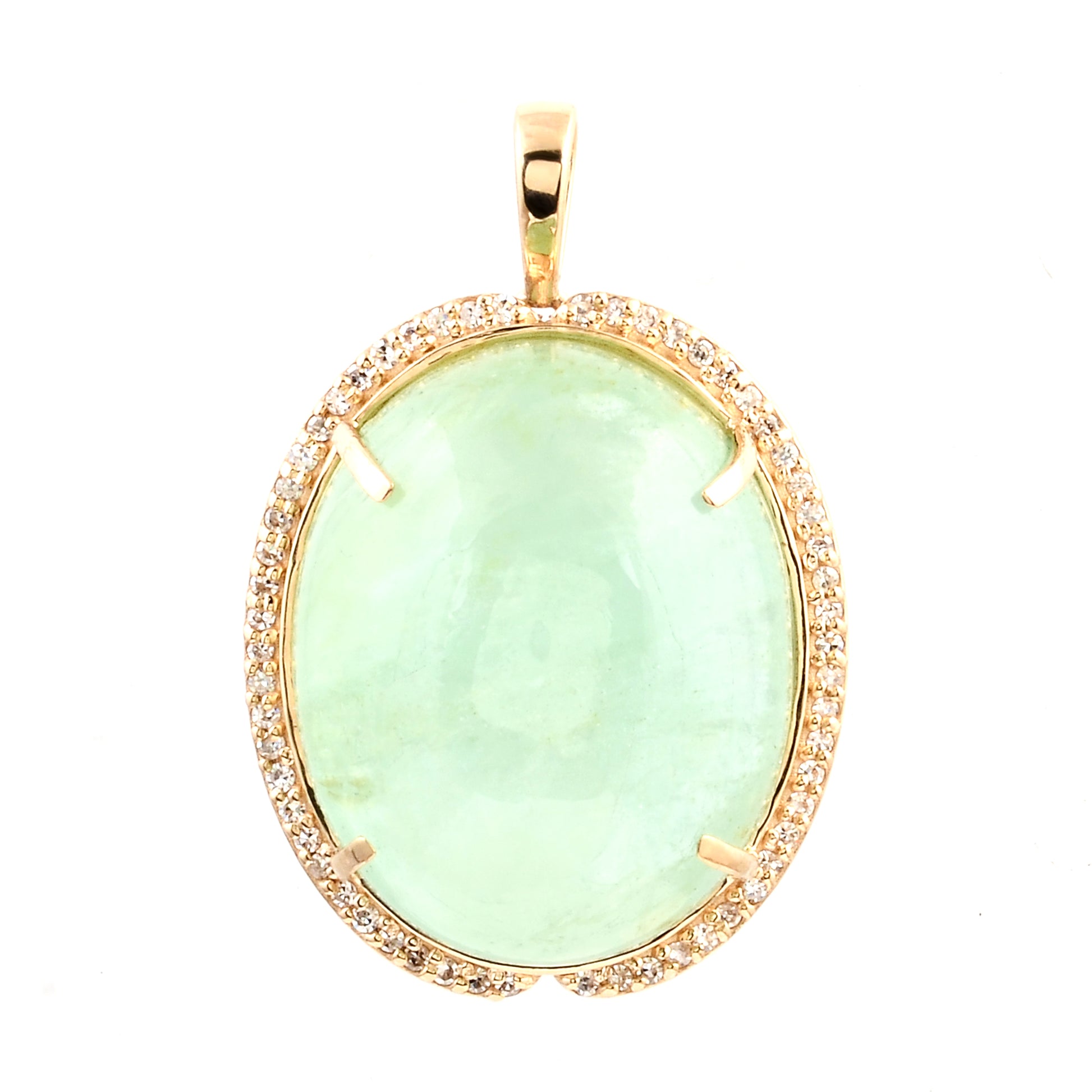 24.63 Ct Oval Cabochon Emerald 14K Gold Pendant