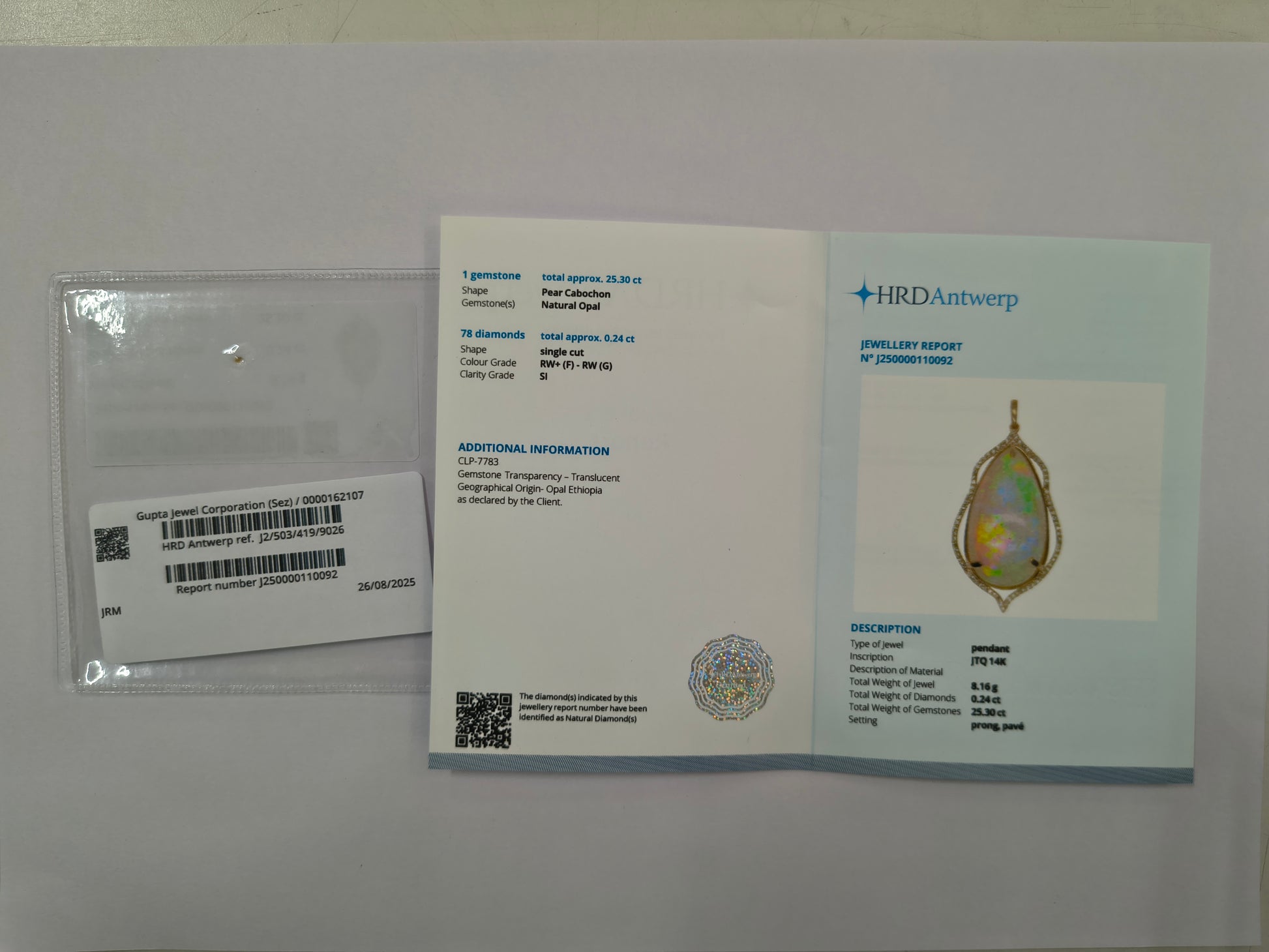 25.54 Total Carat Natural Opal 14K Gold Pendant