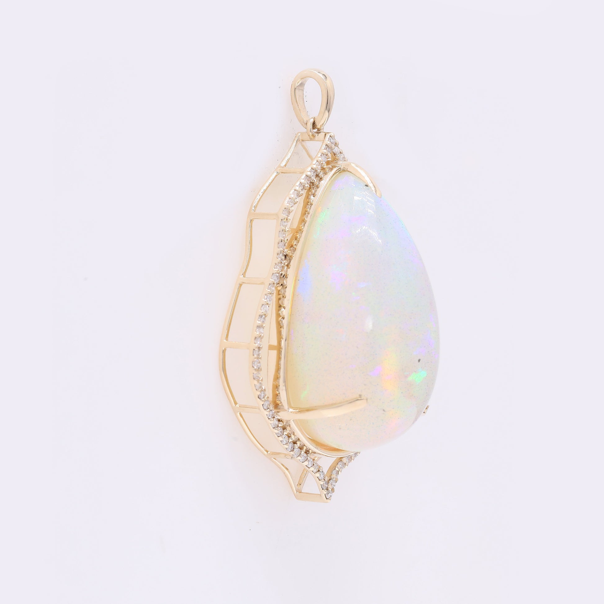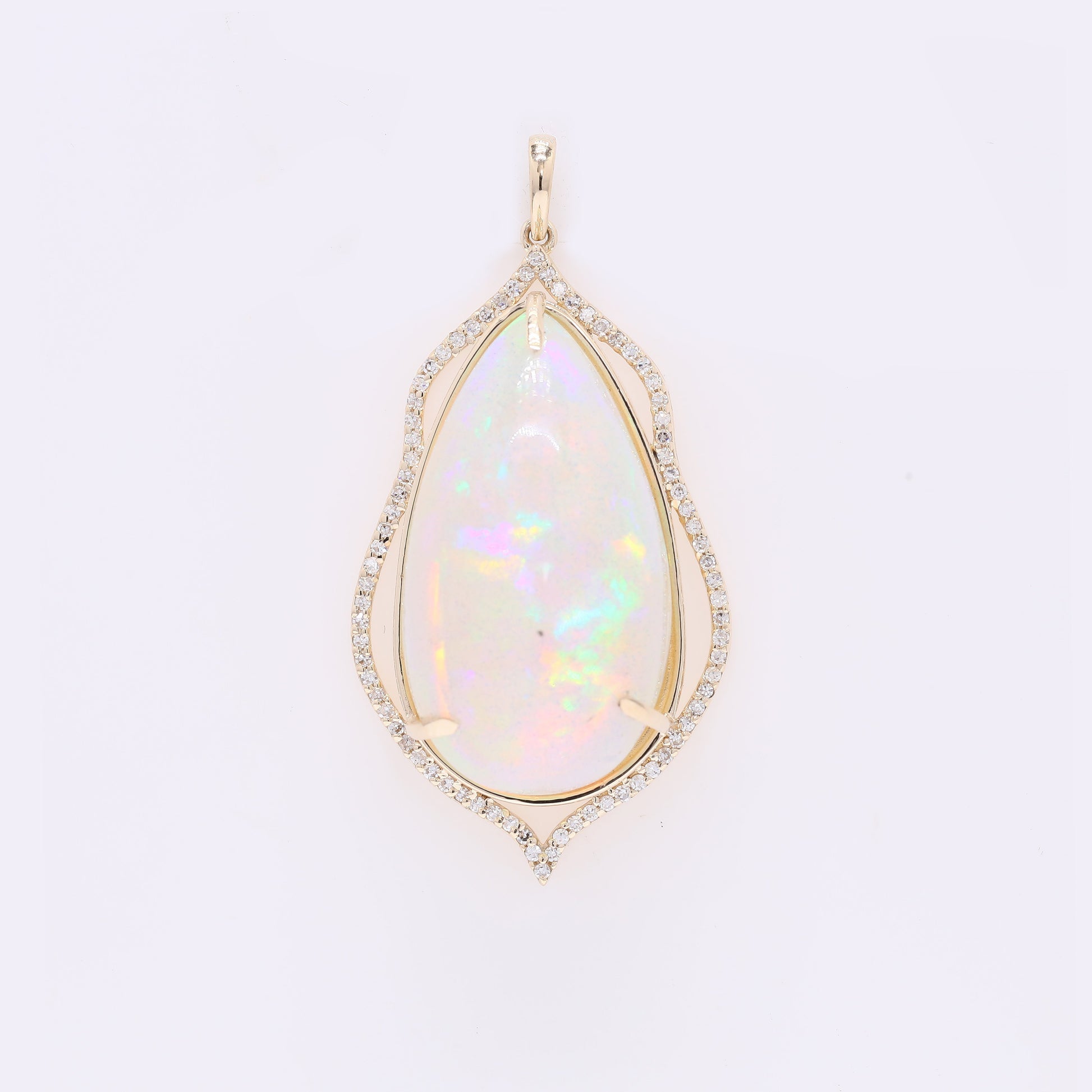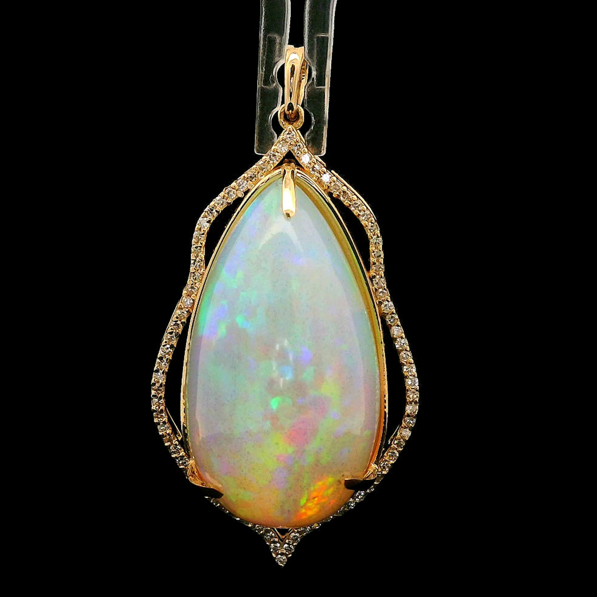 25.54 Ct Pear Cabochon Natural Opal 14K Gold Pendant