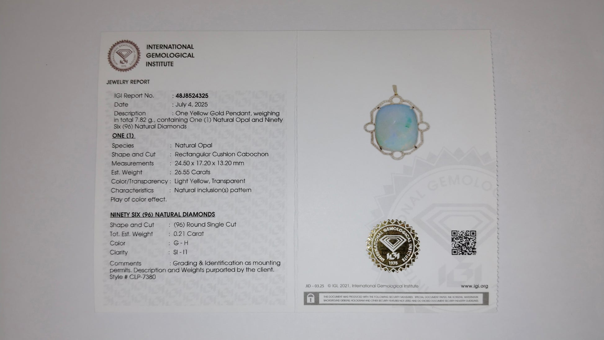 26.76 Total Carat Natural Opal 14K Gold Pendant
