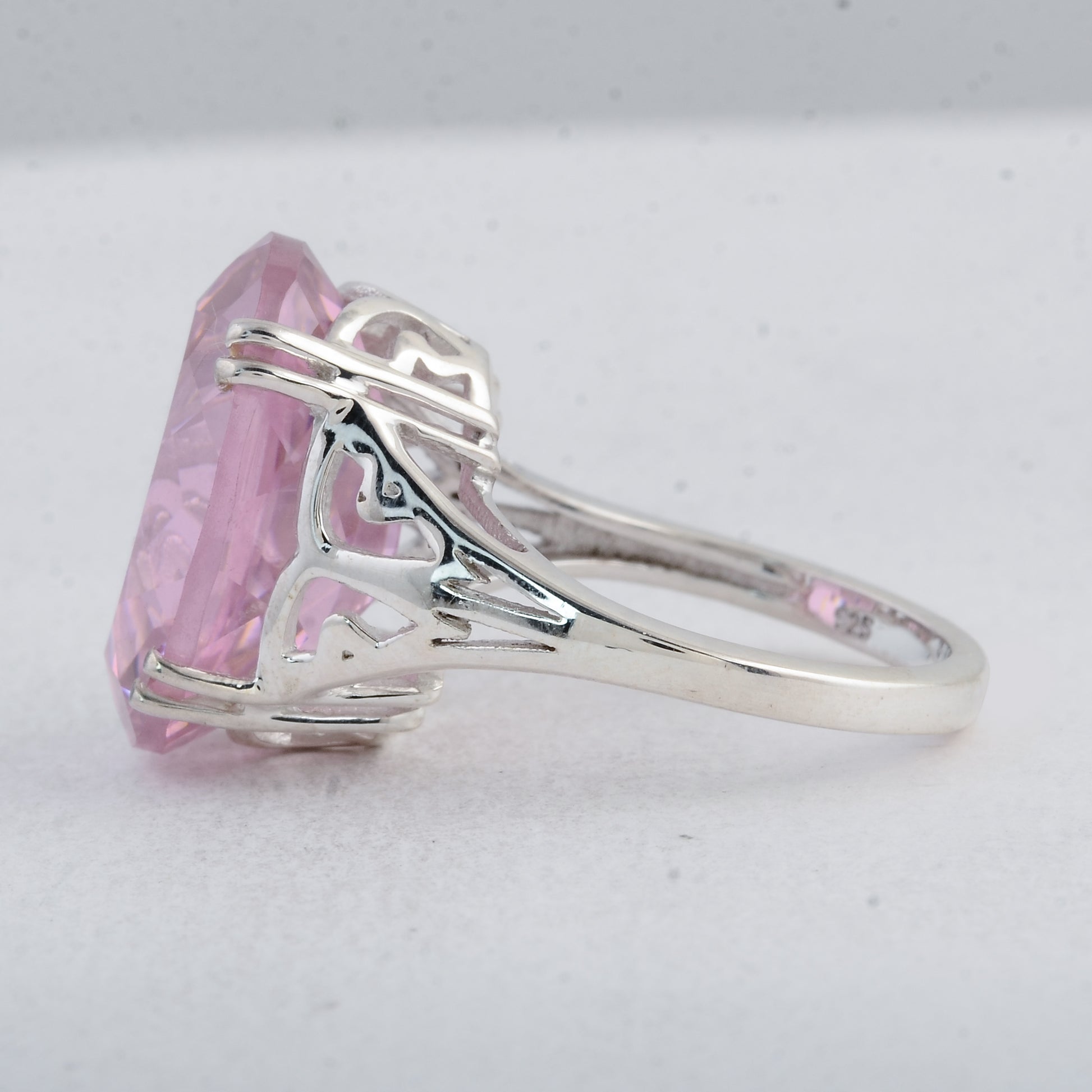 26.79 Ct Oval Pink Cz 925 Sterling Silver Ring