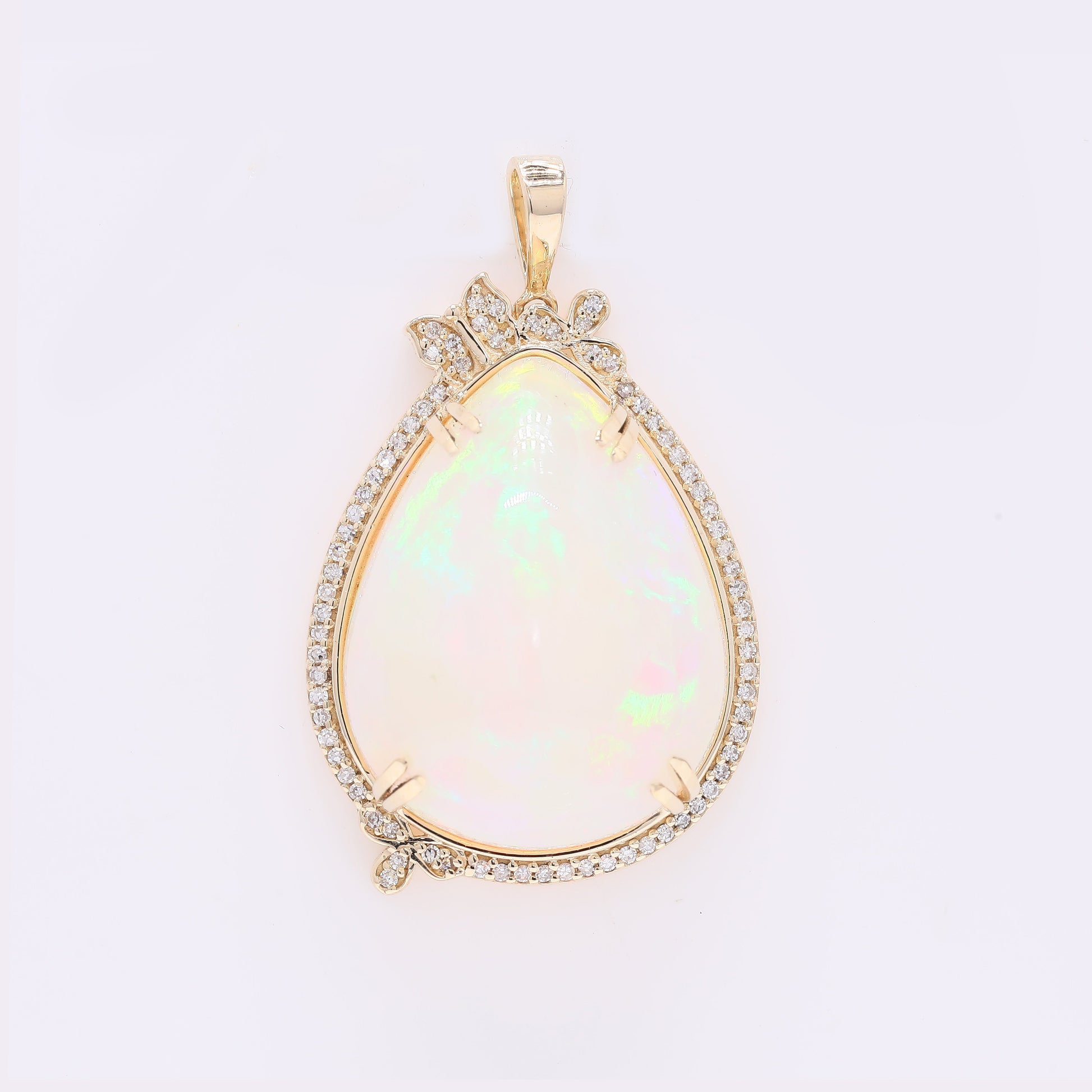 27.03 Ct Pear Cabochon Natural Opal 14K Gold Pendant