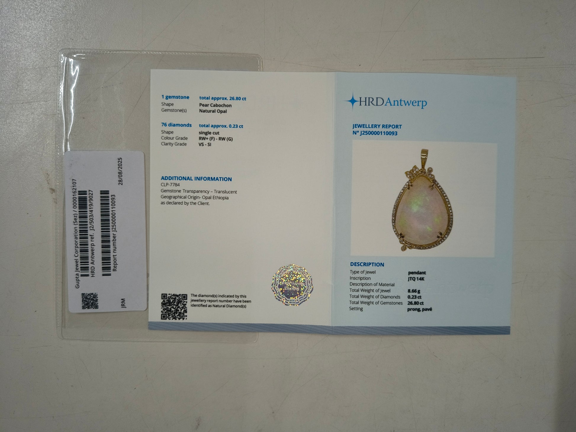 27.03 Total Carat Natural Opal 14K Gold Pendant