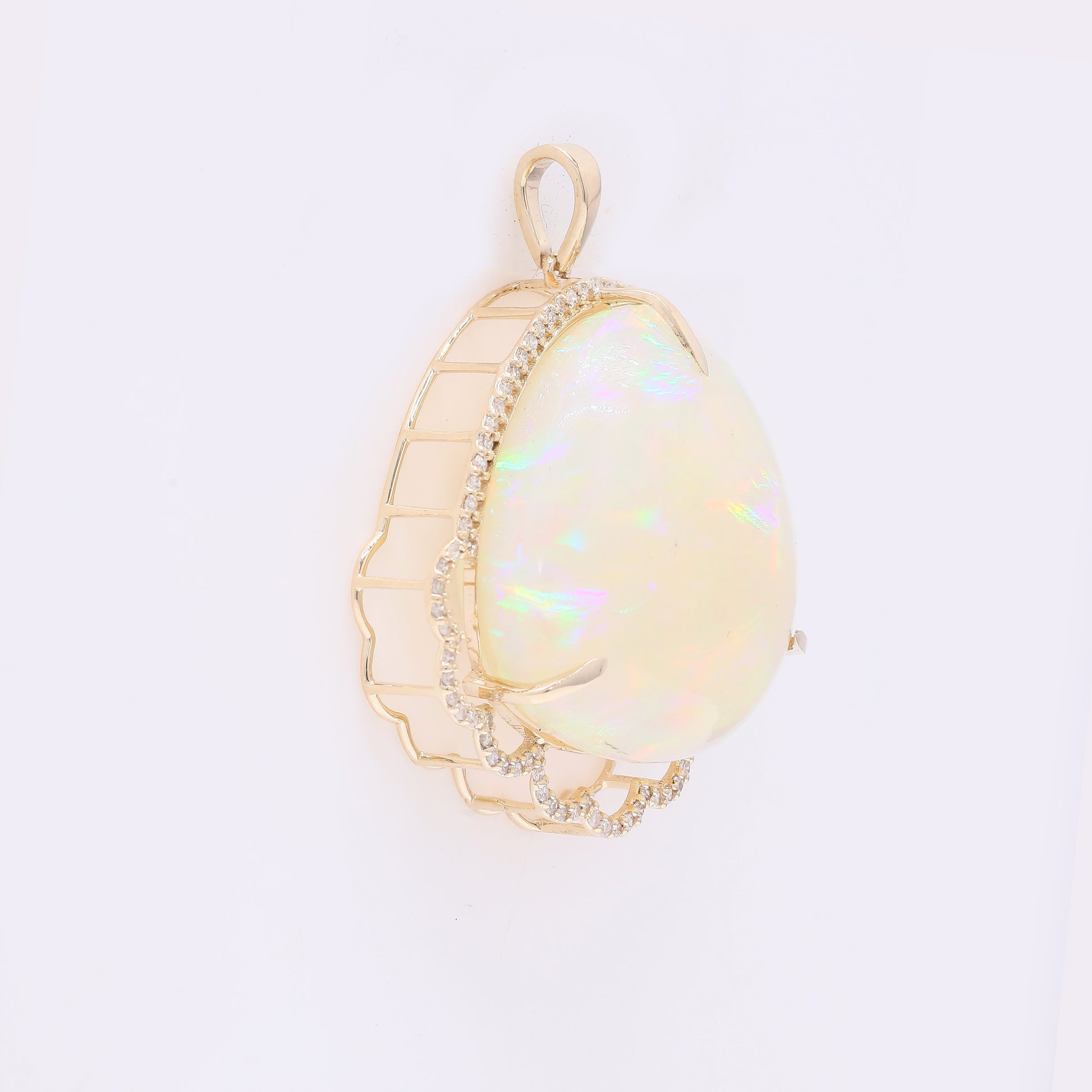 27.10 Ct Pear Cabochon Natural Opal 14K Gold Pendant