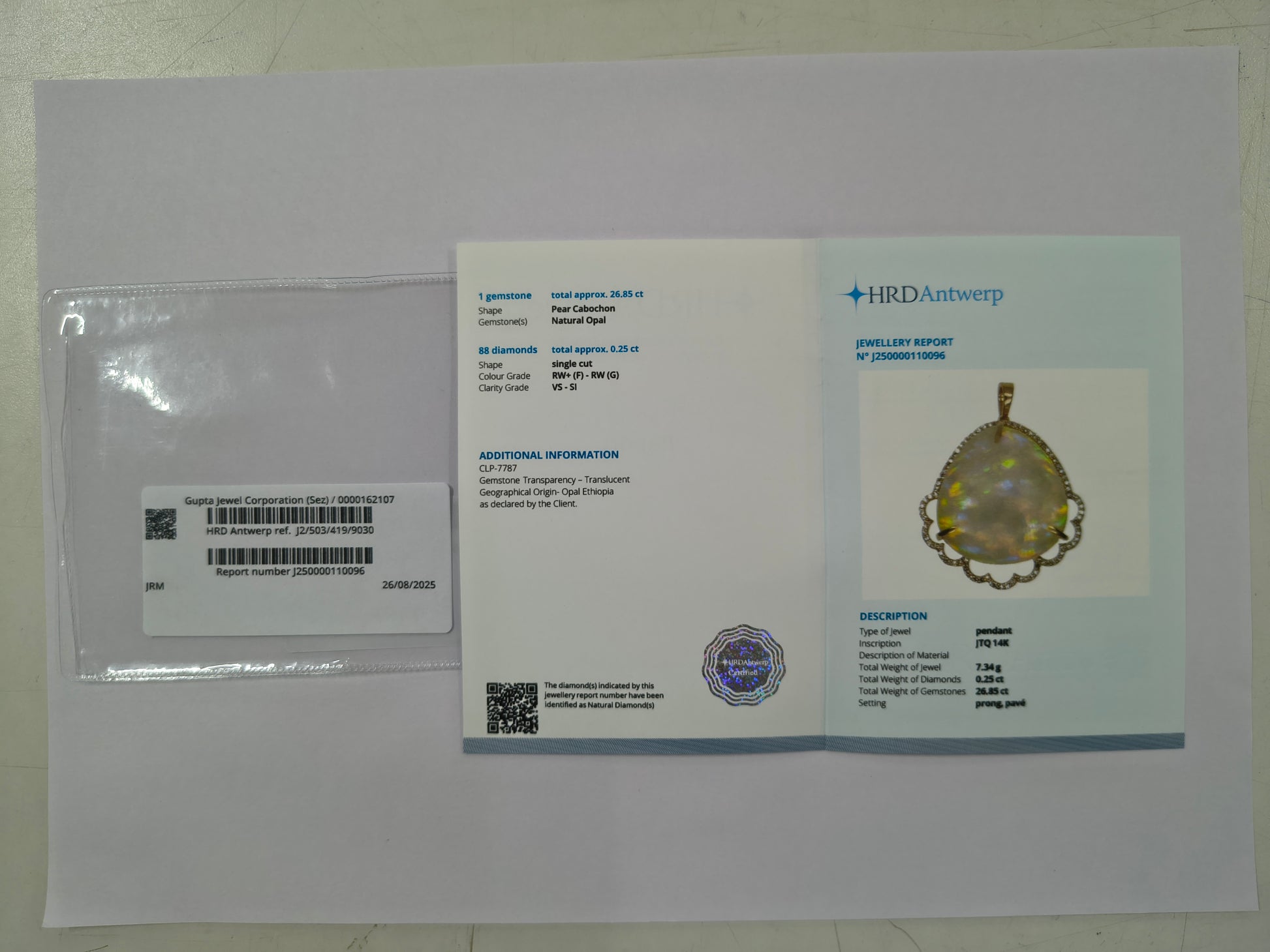 27.10 Total Carat Natural Opal 14K Gold Pendant