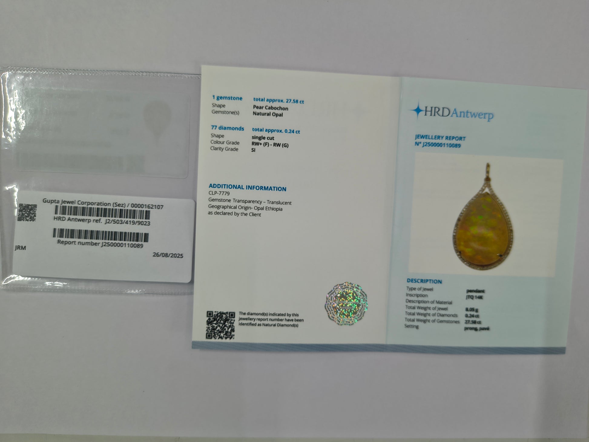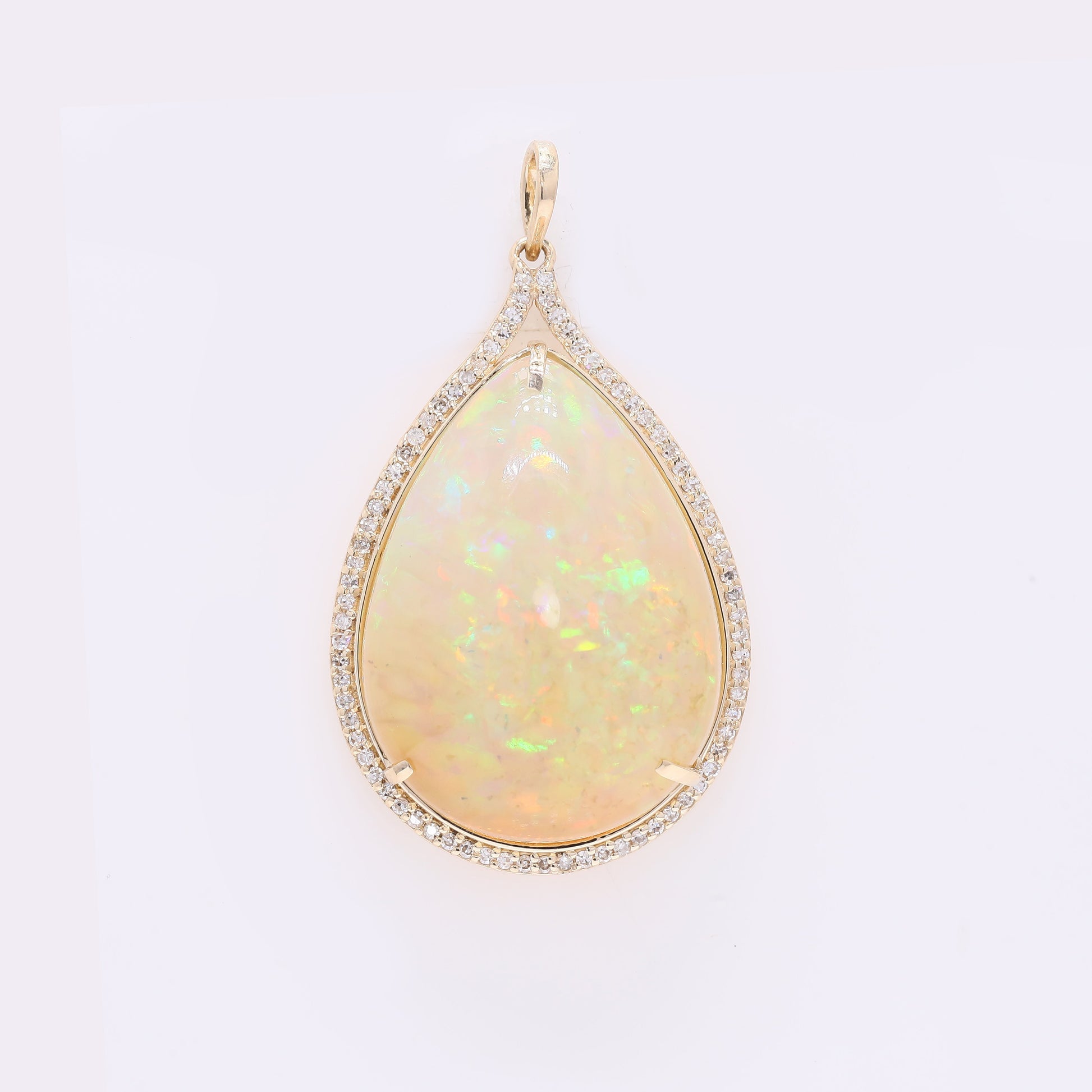 27.82 Ct Pear Cabochon Natural Opal 14K Gold Pendant