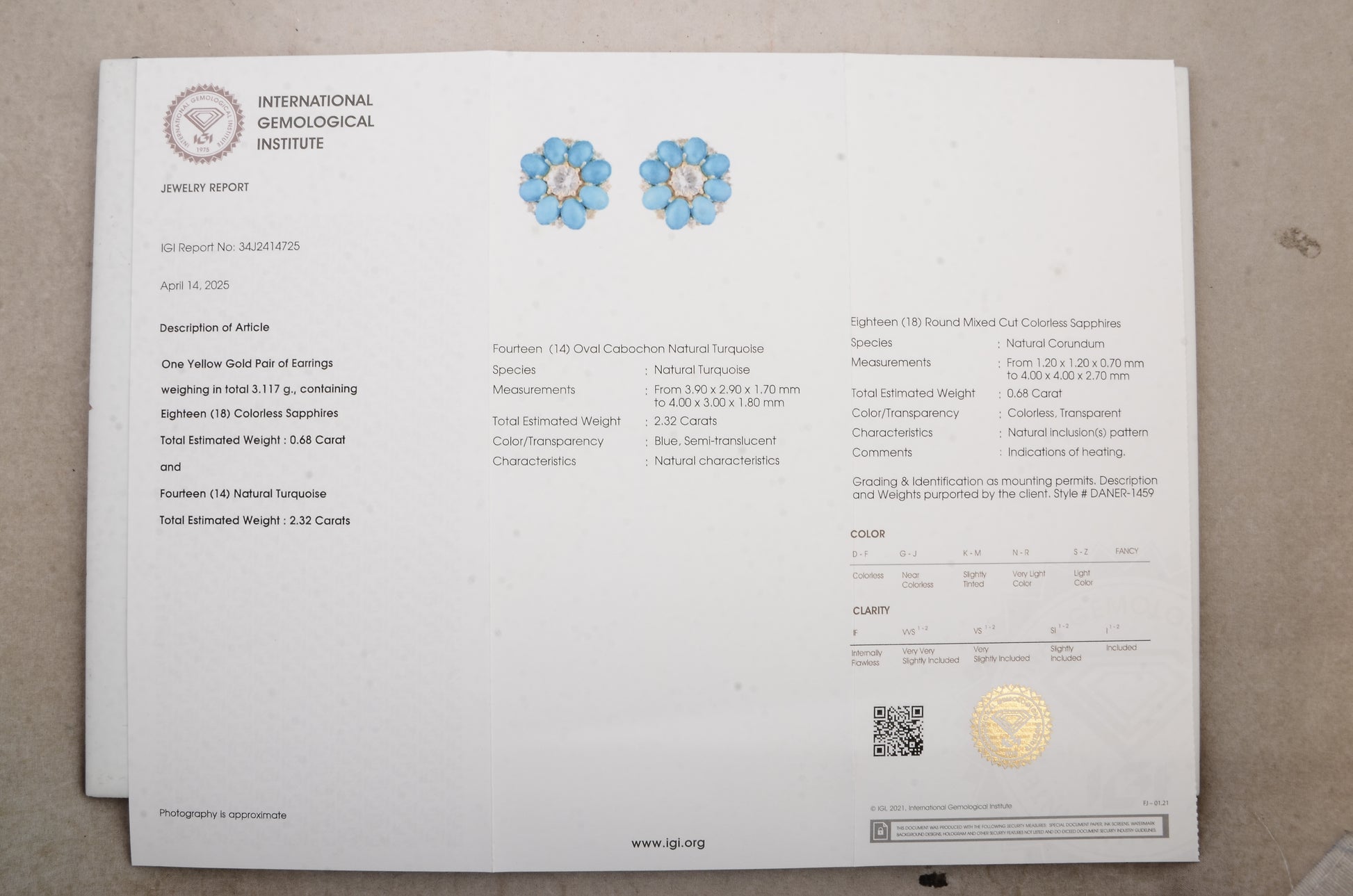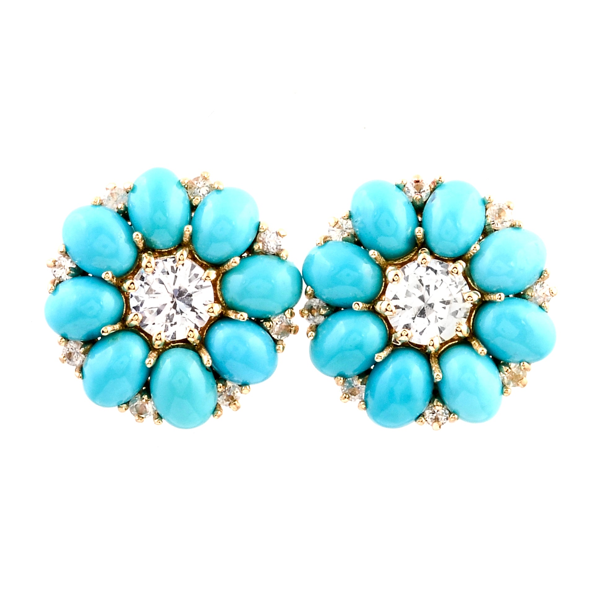 3.00 Total Carat Turquoise 14K Gold Earrings