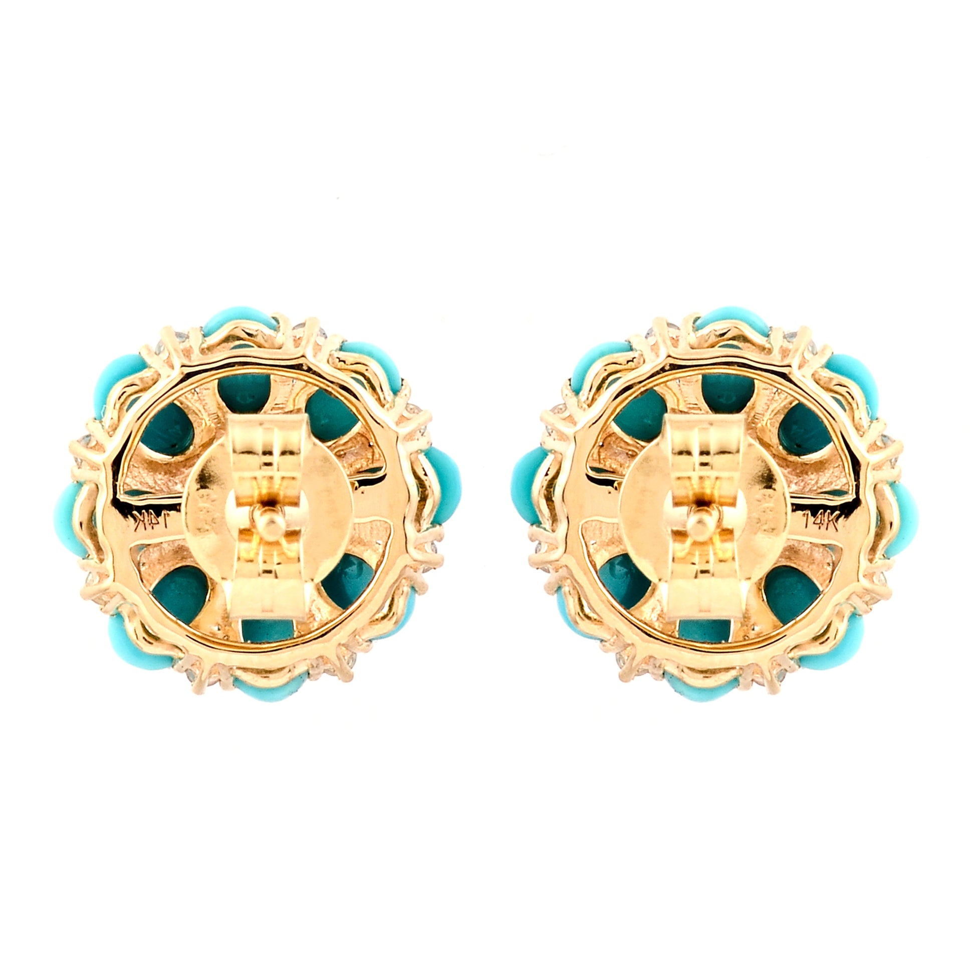 3.00 Ct Oval Cabochon Turquoise 14K Gold Earrings