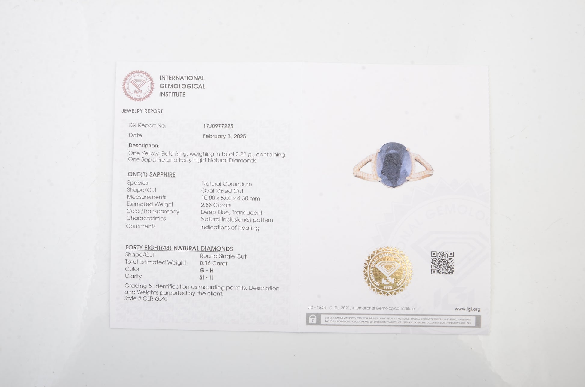 - Lab Name: International Gemological Institute (IGI)