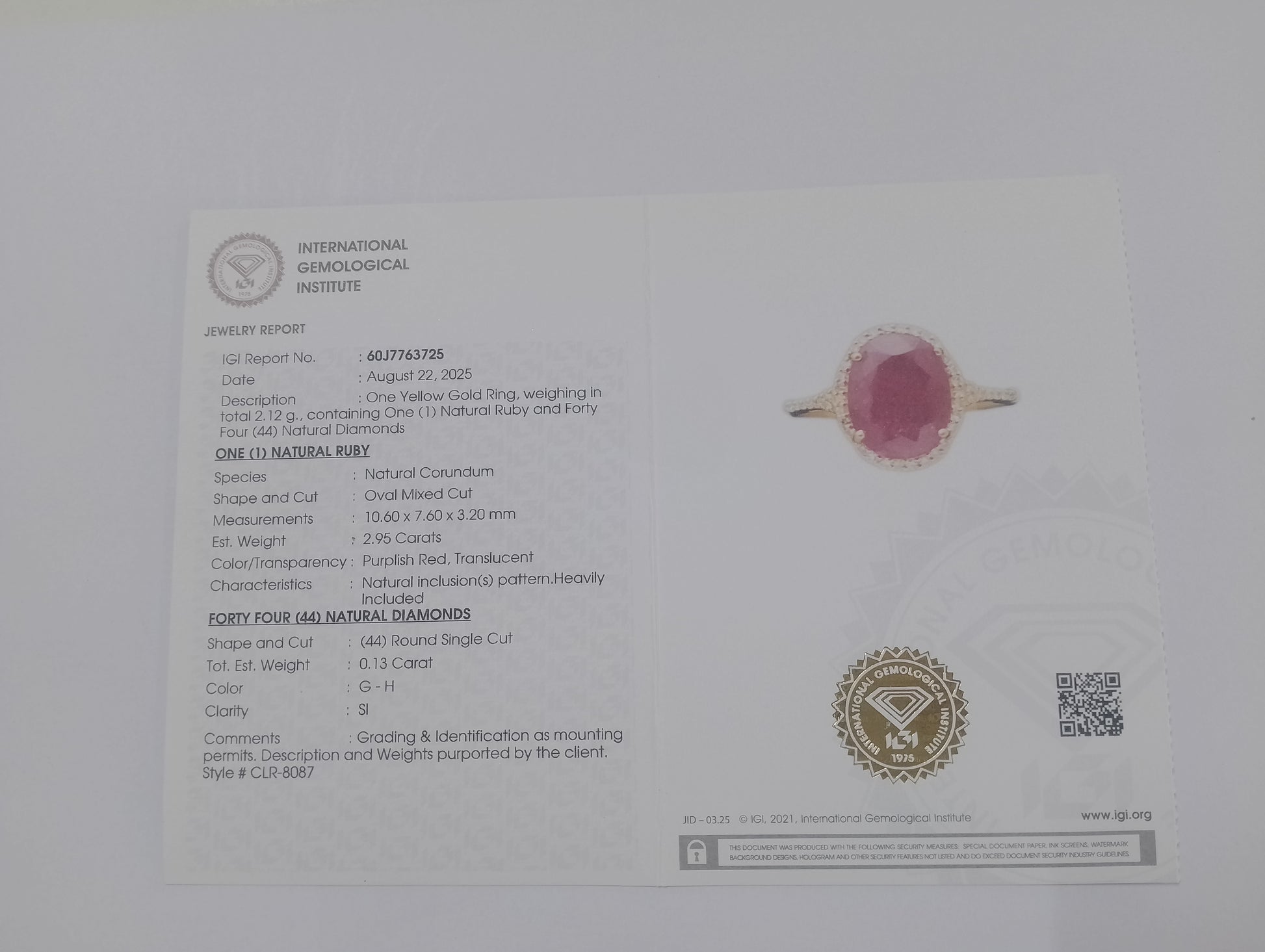 3.08 Total Carat Natural Corundum Ruby 14K Gold Ring