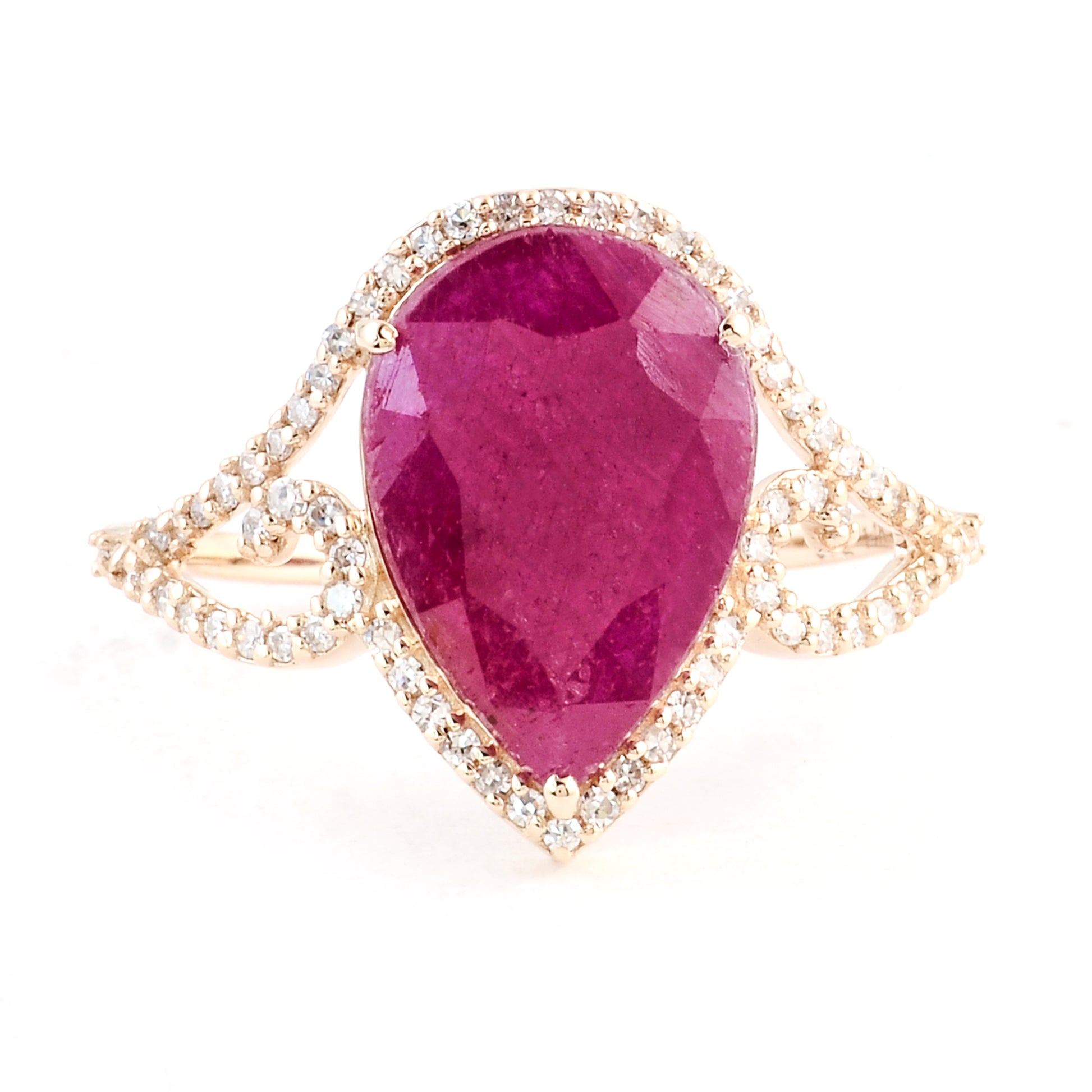 3.08 Ct Pear Mixed Cut Natural Corundum Ruby 14K Gold Ring