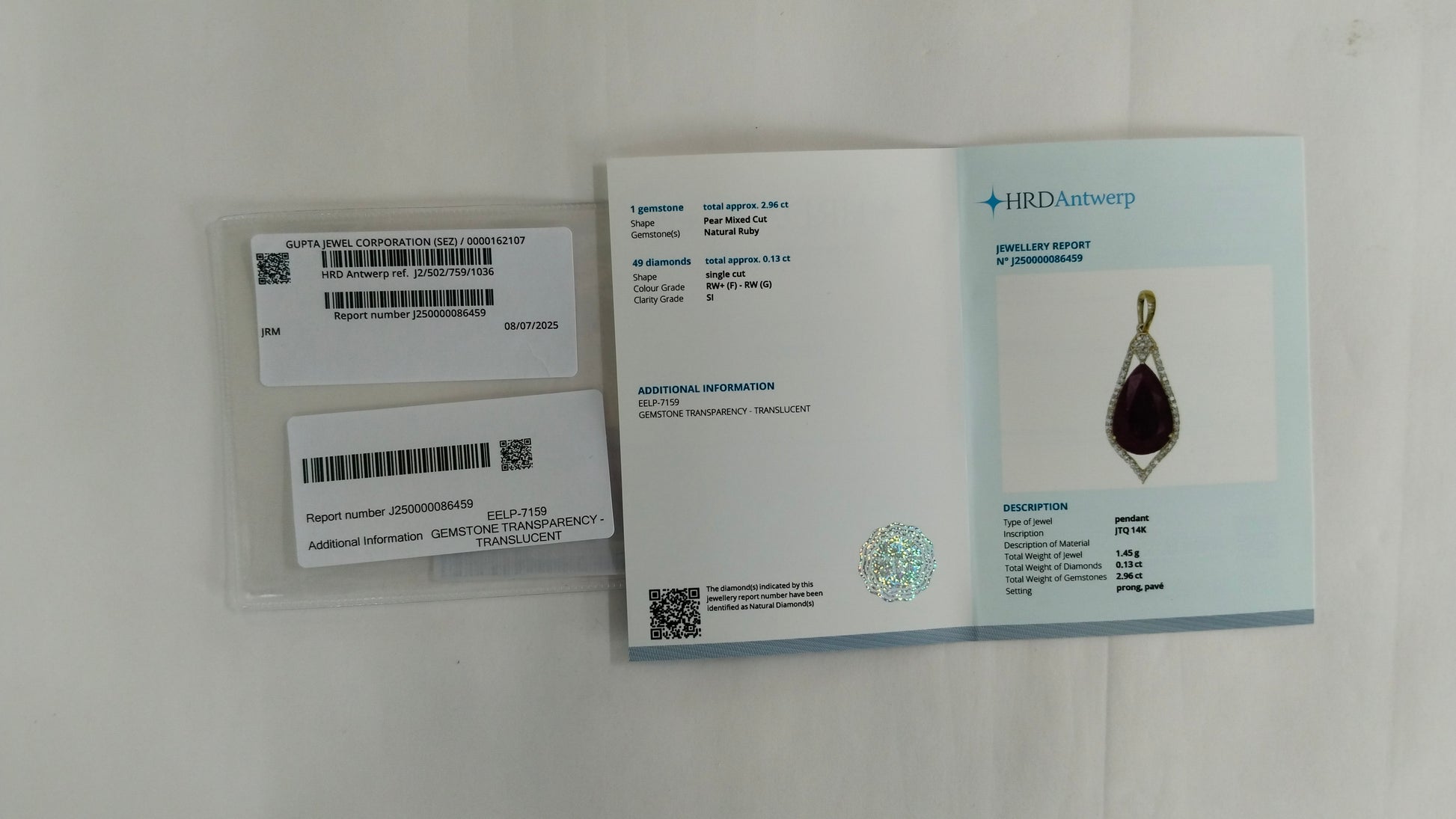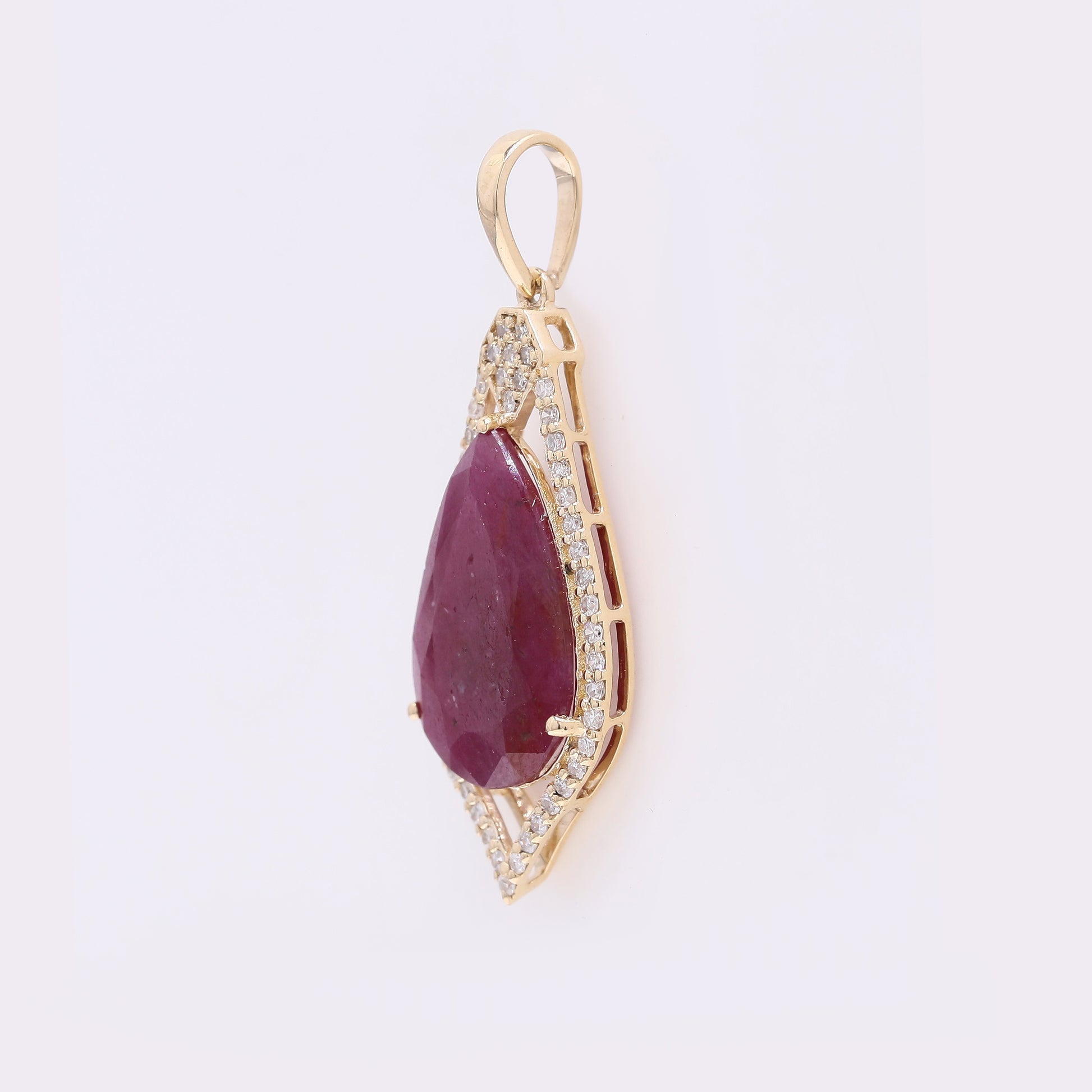 3.09 Ct Pear Mixed Cut Natural Ruby 14K Gold Pendant