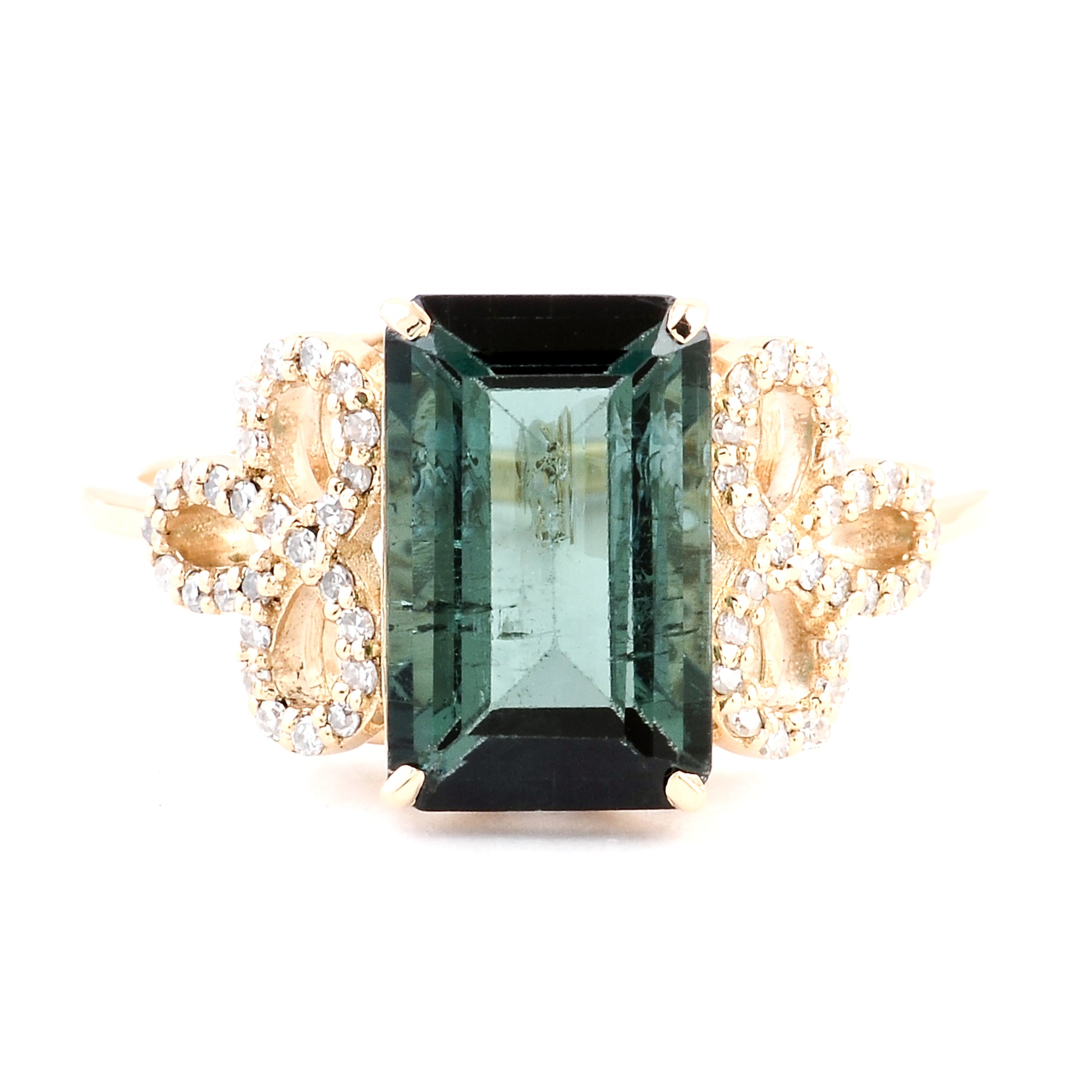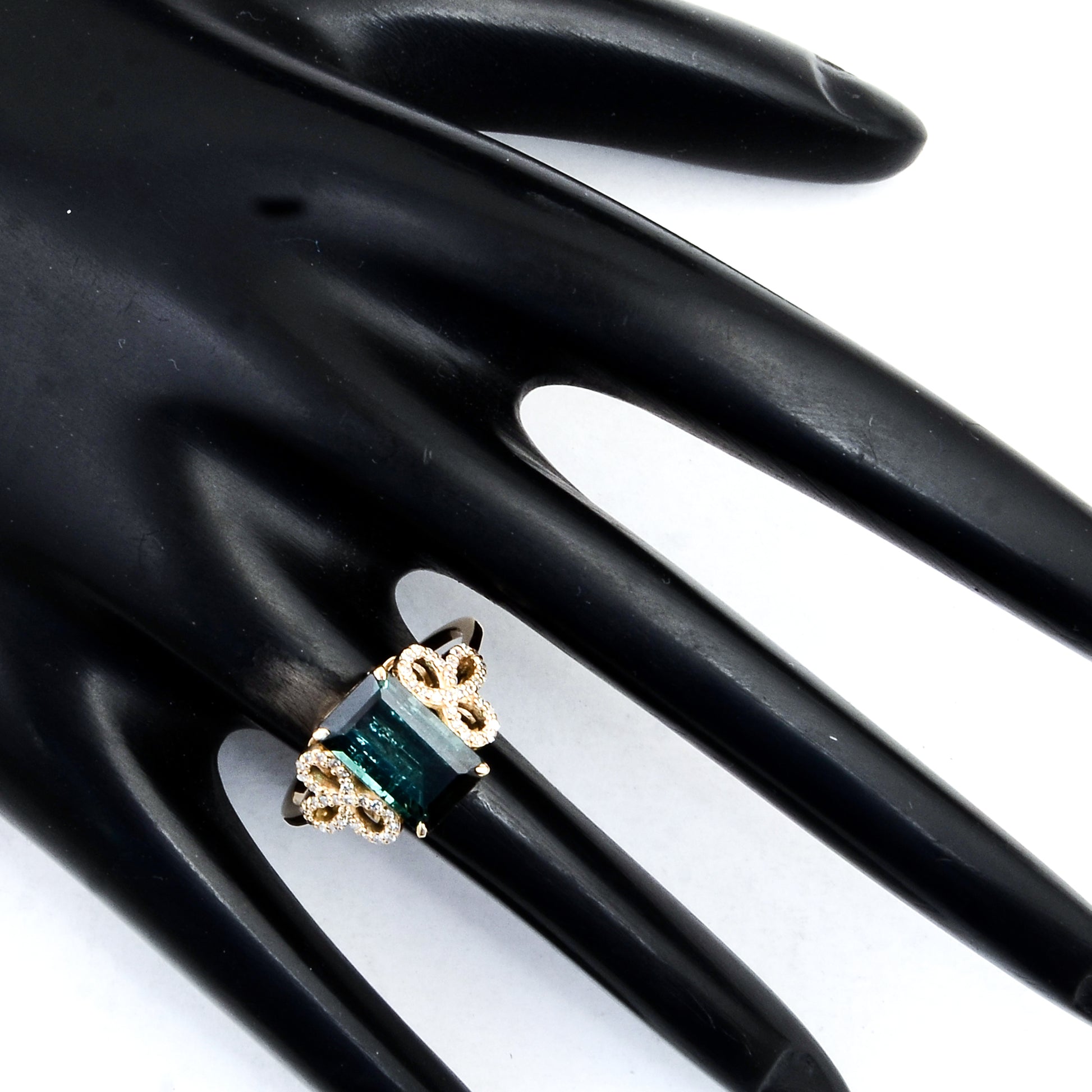 3.10 Ct Emerald Cut Natural Tourmaline 14K Gold Ring