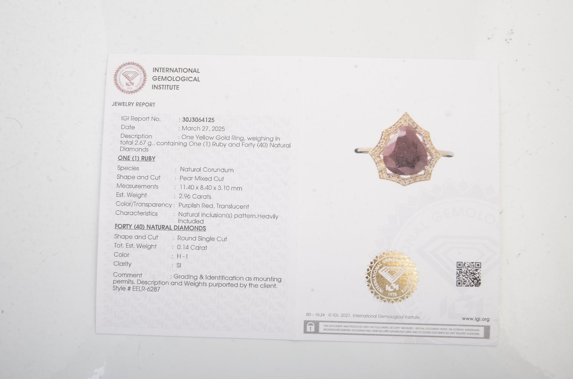 - Lab Name: International Gemological Institute (IGI)
