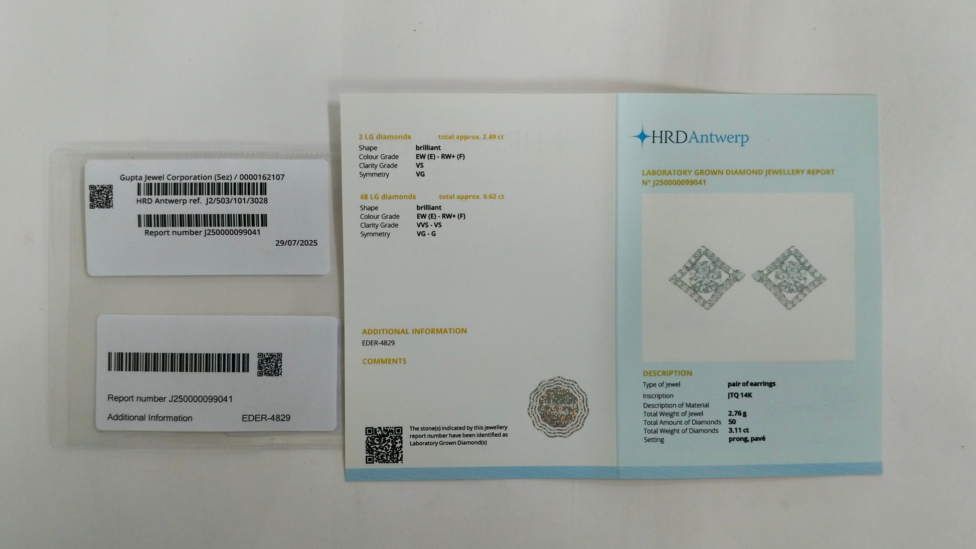 3.11-Carat Lab-Grown Diamond Round Brilliant Earrings - HRD Certified