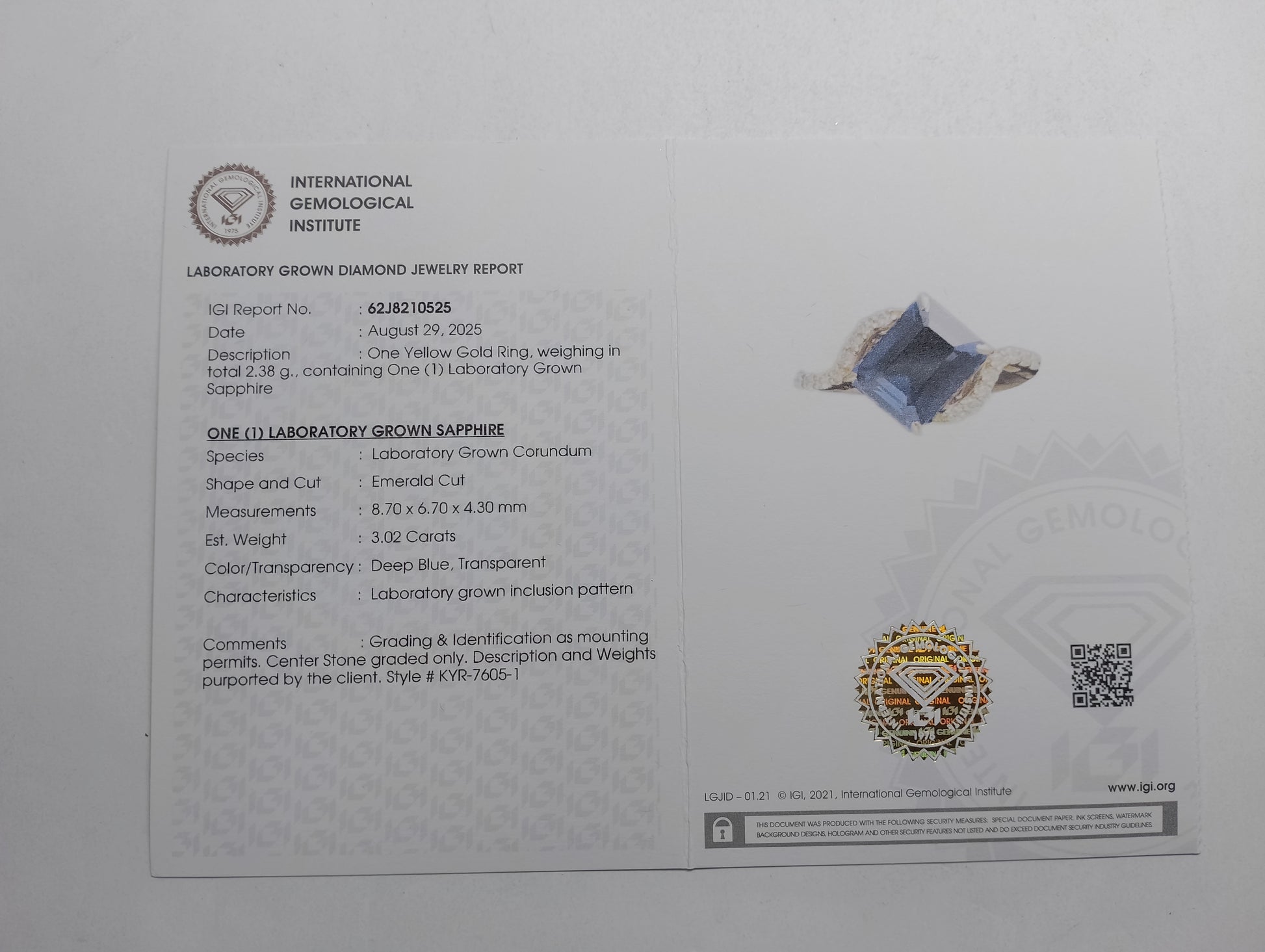 - Lab Name: International Gemological Institute (IGI)