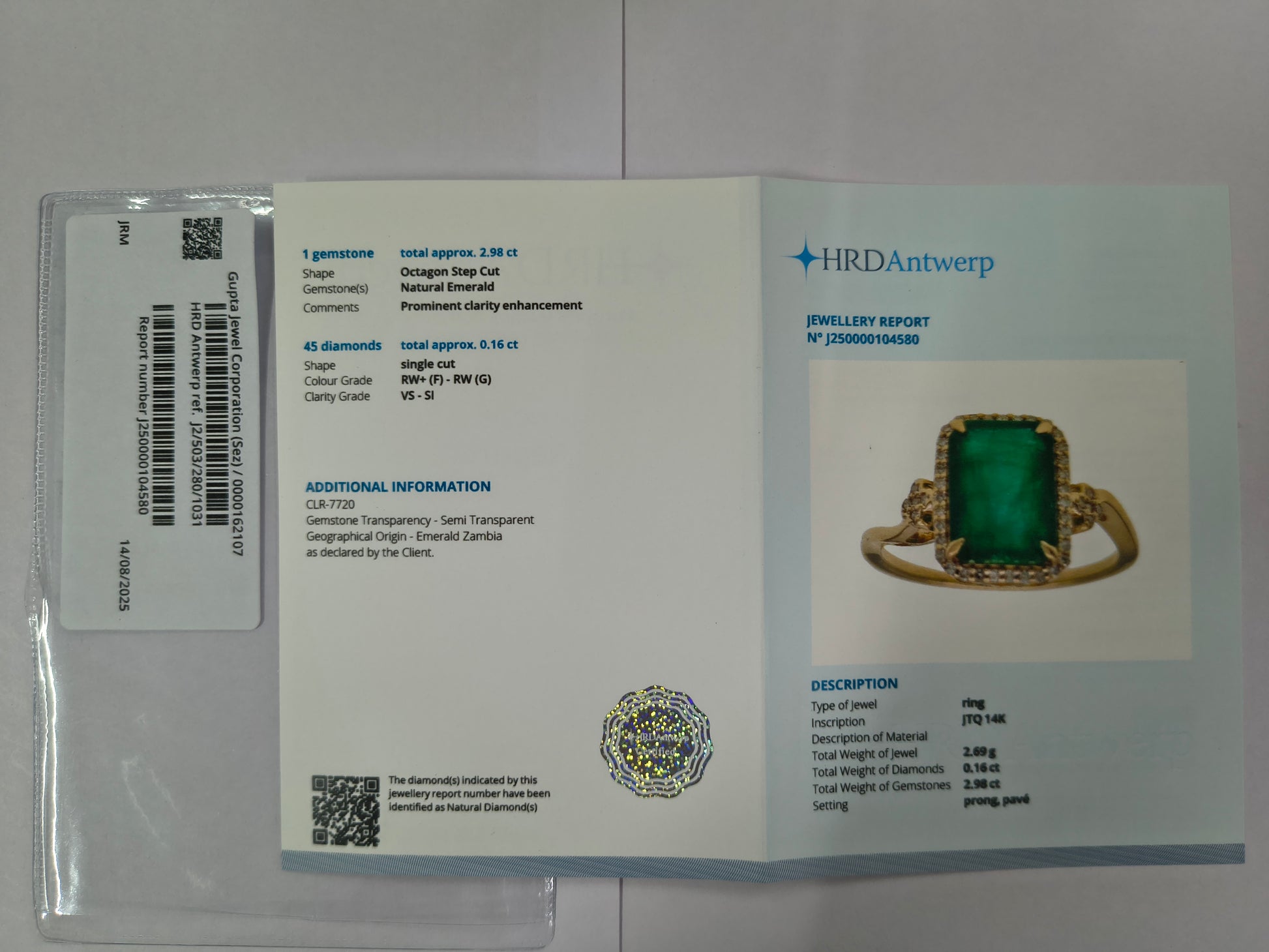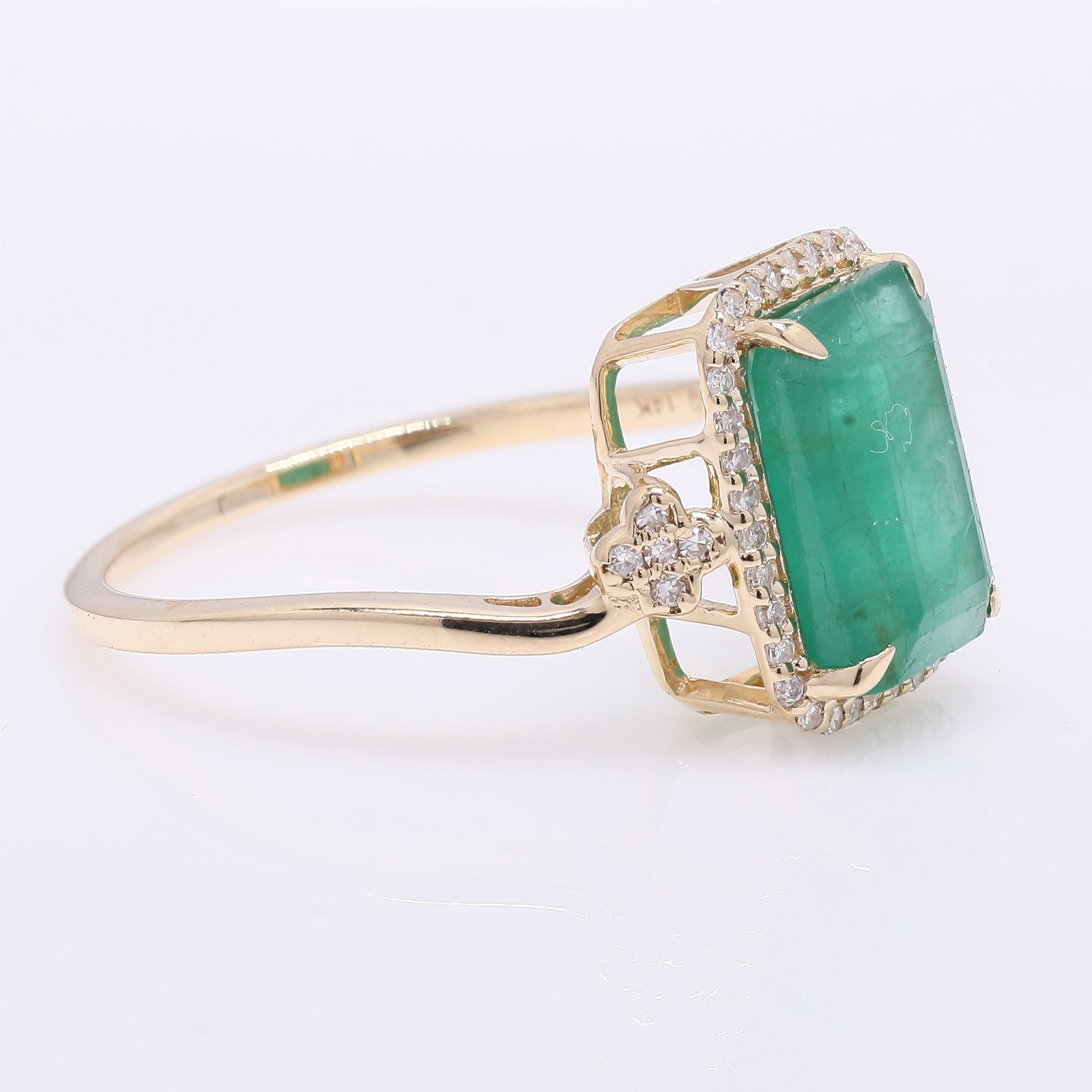 3.14 Ct Octagon Step Cut Natural Emerald 14K Gold Ring