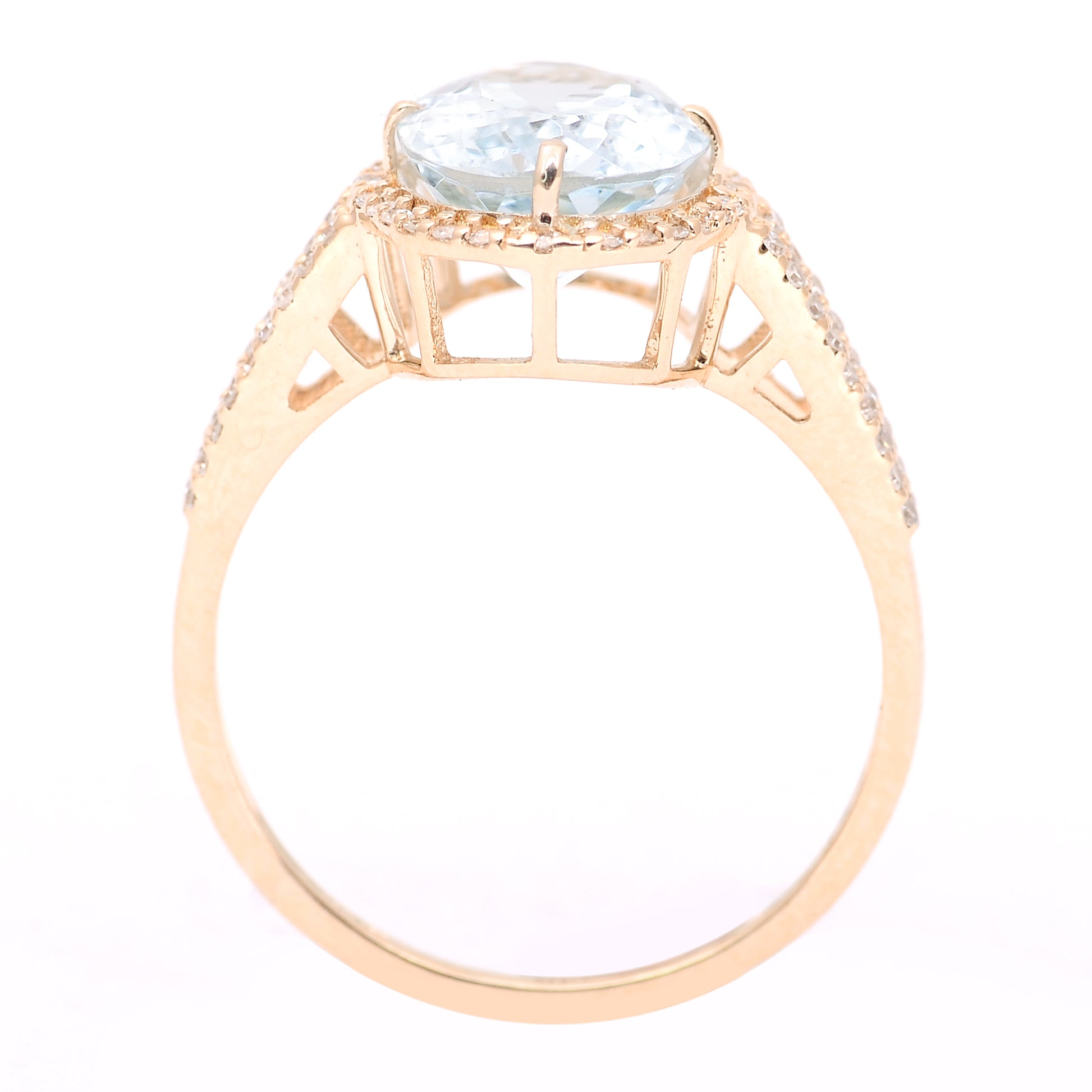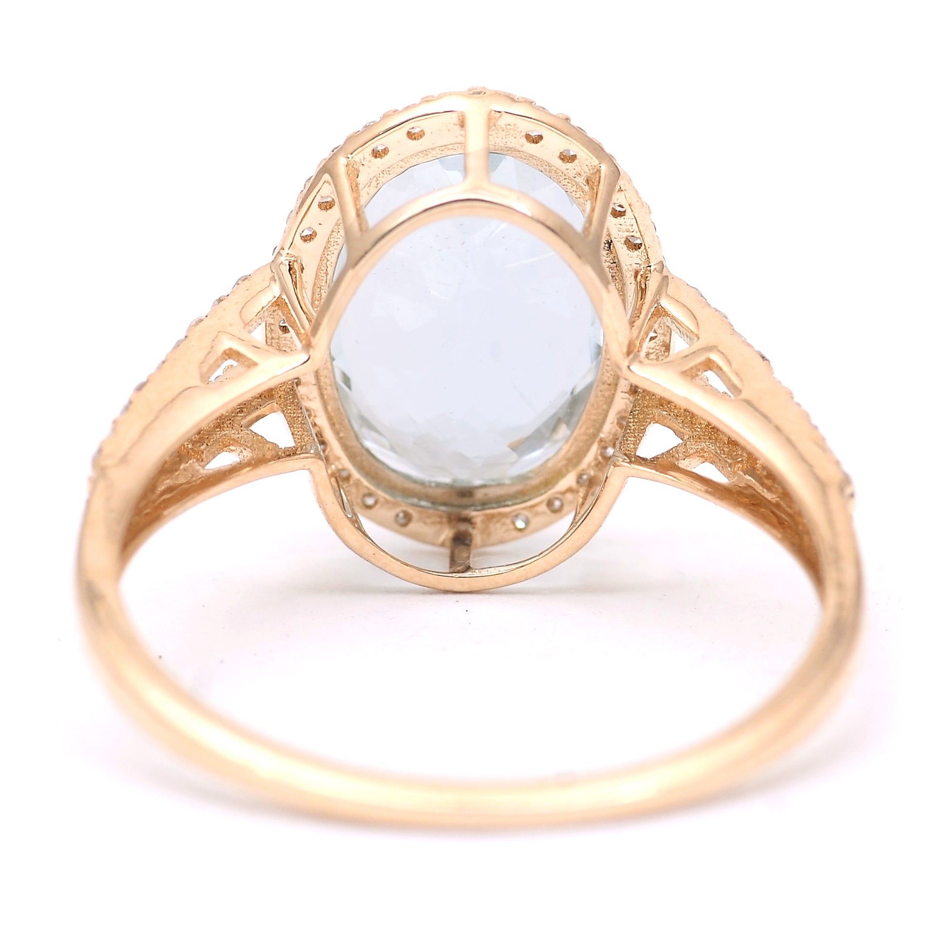 3.15 Ct Oval Mixed Cut Natural Aquamarine 14K Gold Ring
